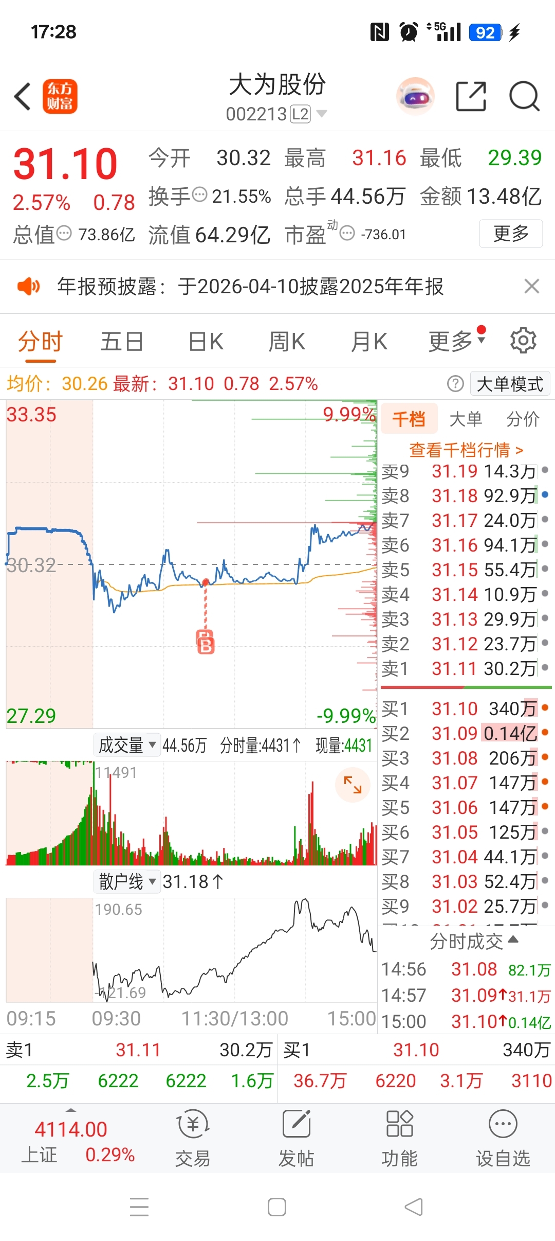 $大为股份(SZ002213)$ 感谢市场,低吸收获3个多点,舒服