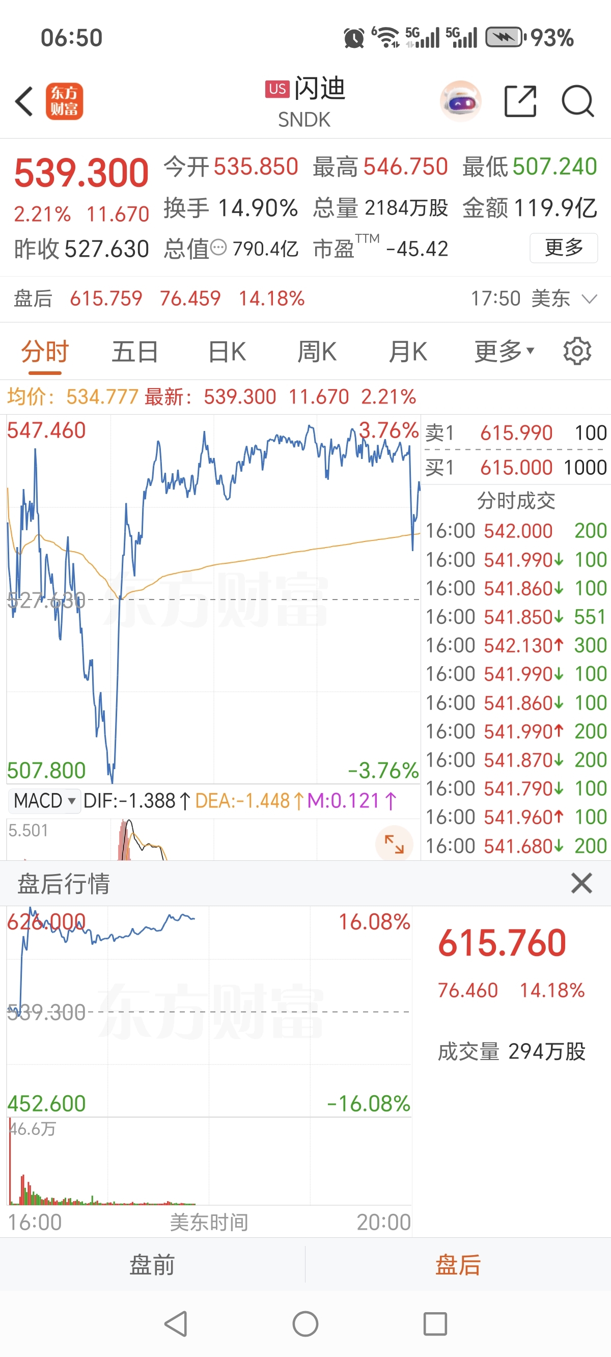 $大为股份(SZ002213)$ 闪迪盘后大涨啊!!!