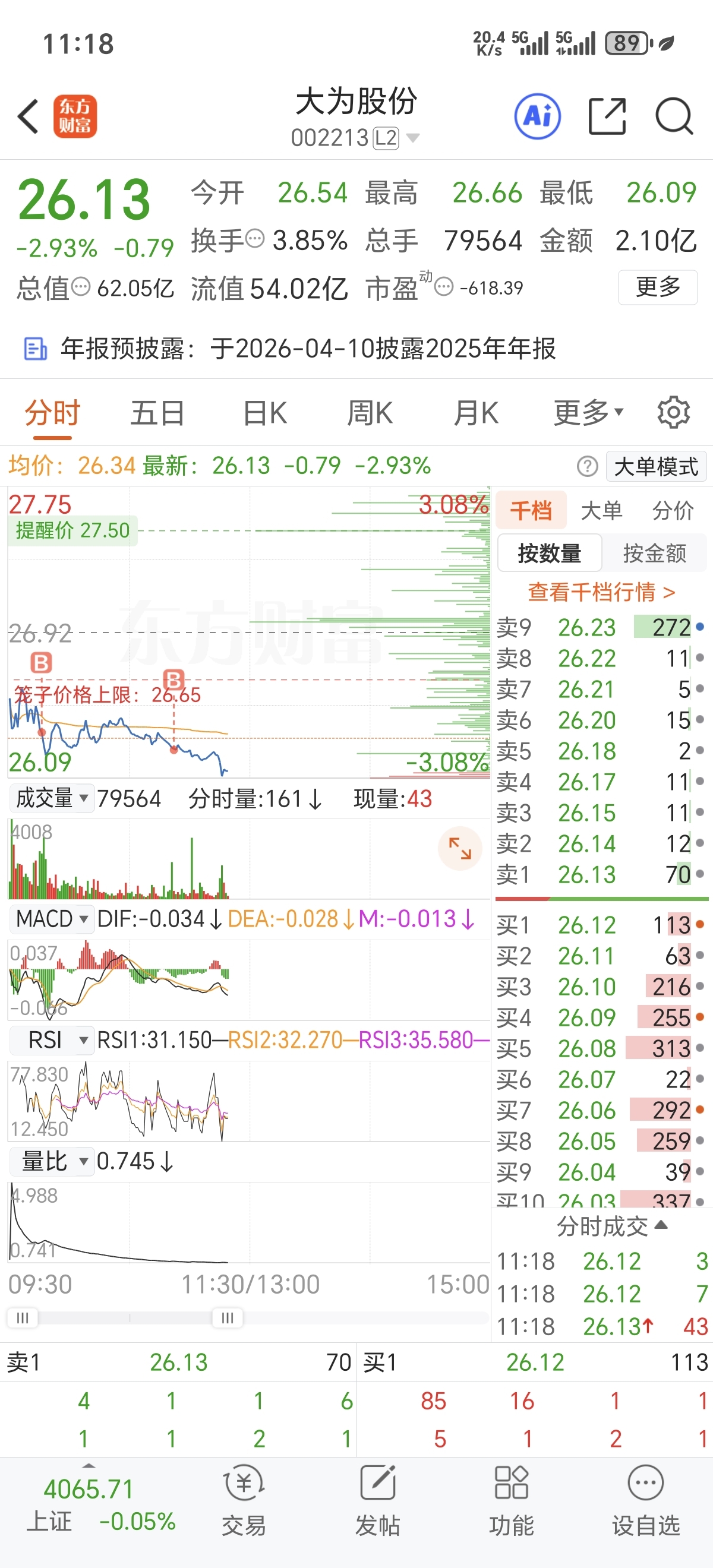 $大为股份(SZ002213)$ 对不住各位兄弟 买跌了