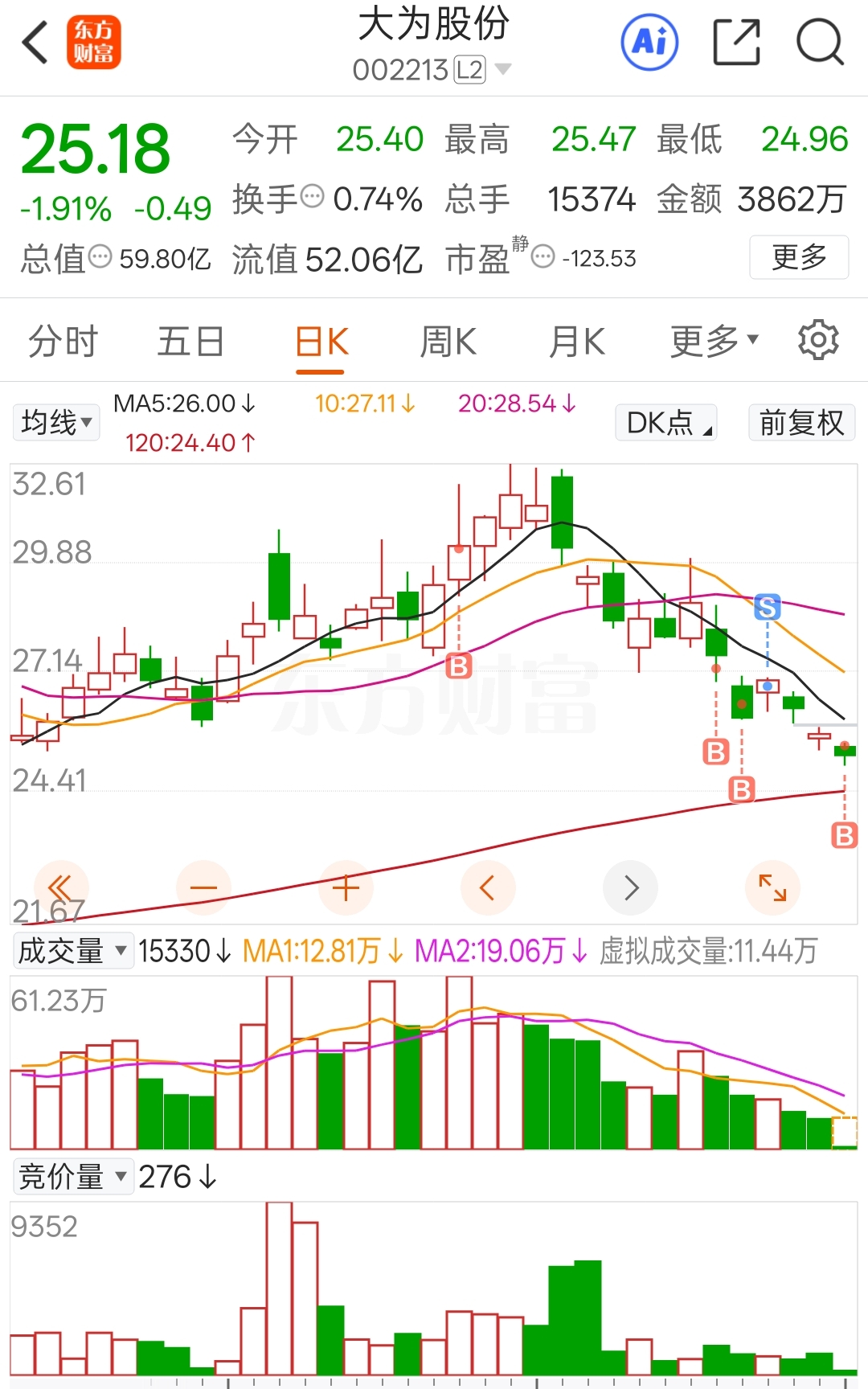 $大为股份(SZ002213)$ 补仓补的心碎啊