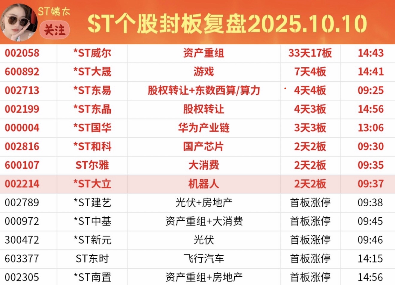 ST个股封板追踪:*ST大立