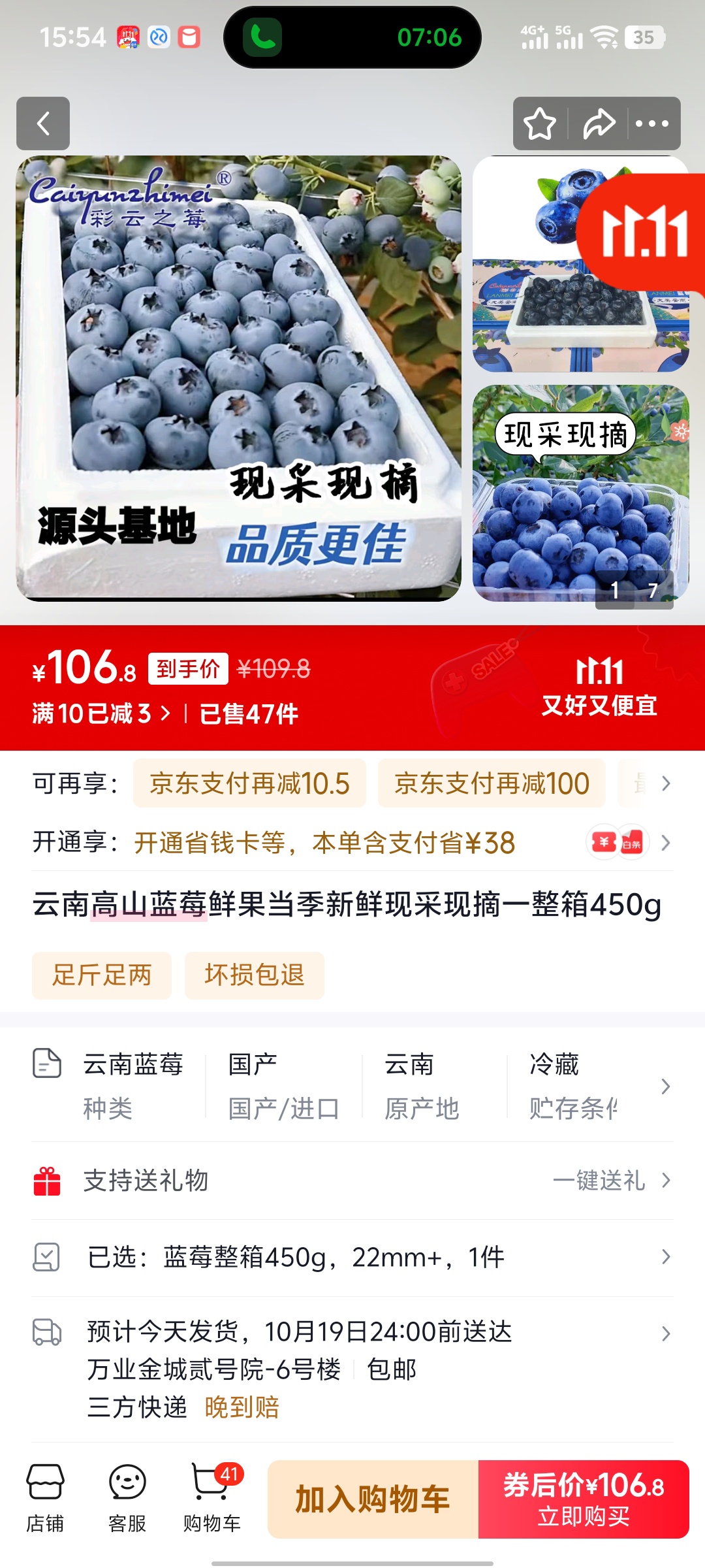 $诺 普 信(SZ002215)$ 京东106块450克直径22的诺普信蓝莓