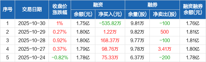 三全食品:融资净偿还535.82万元,融资余额1.75亿元(10-30)