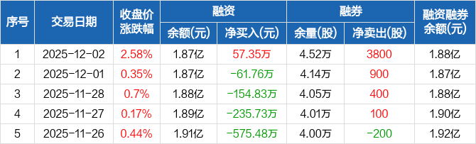 三全食品:融资净买入57.35万元,融资余额1.87亿元(12-02)