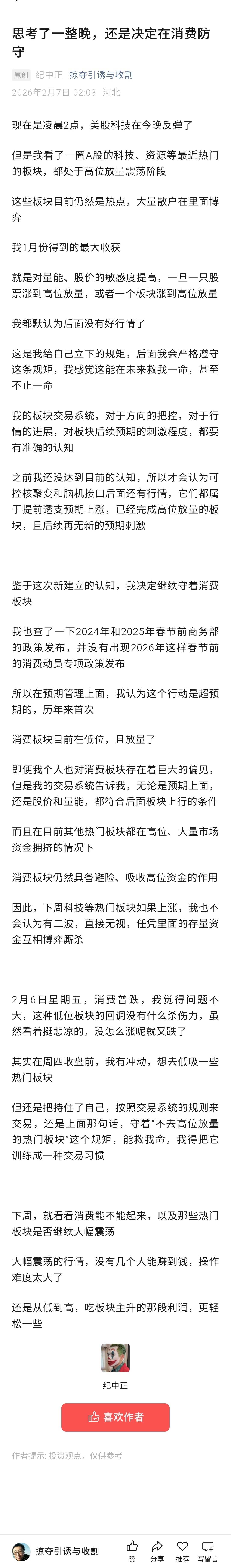 $三全食品(SZ002216)$ $一致魔芋(SZ920273)$ $XD海天味(SH603288)$ 对高低板块切换思考了一整晚,还是决定在消费防守