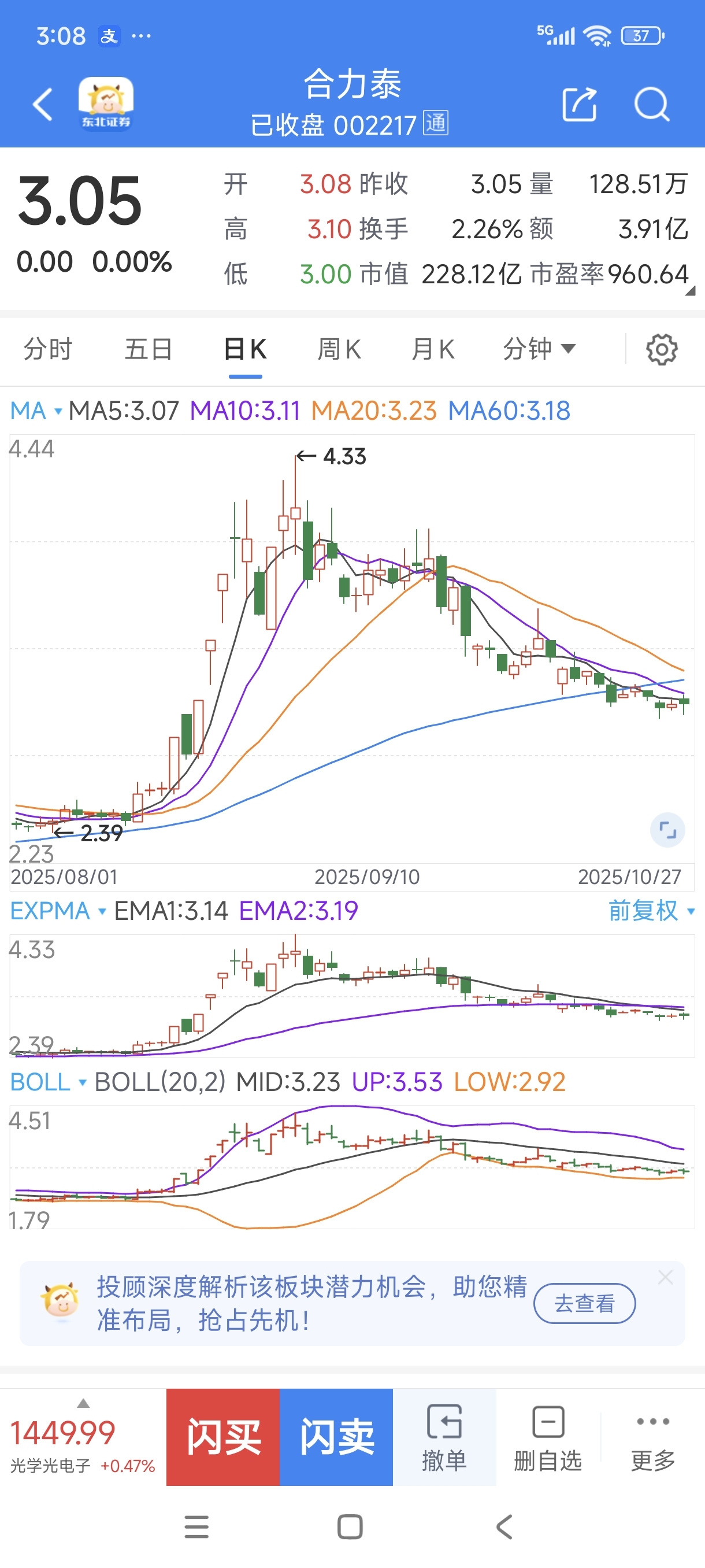 $合力泰(SZ002217)$ 长教训!从此不买下降通道的熊股,公司董事长吃石的,市值不行,分红不行,什么都不行,还是得买上升通道的股票