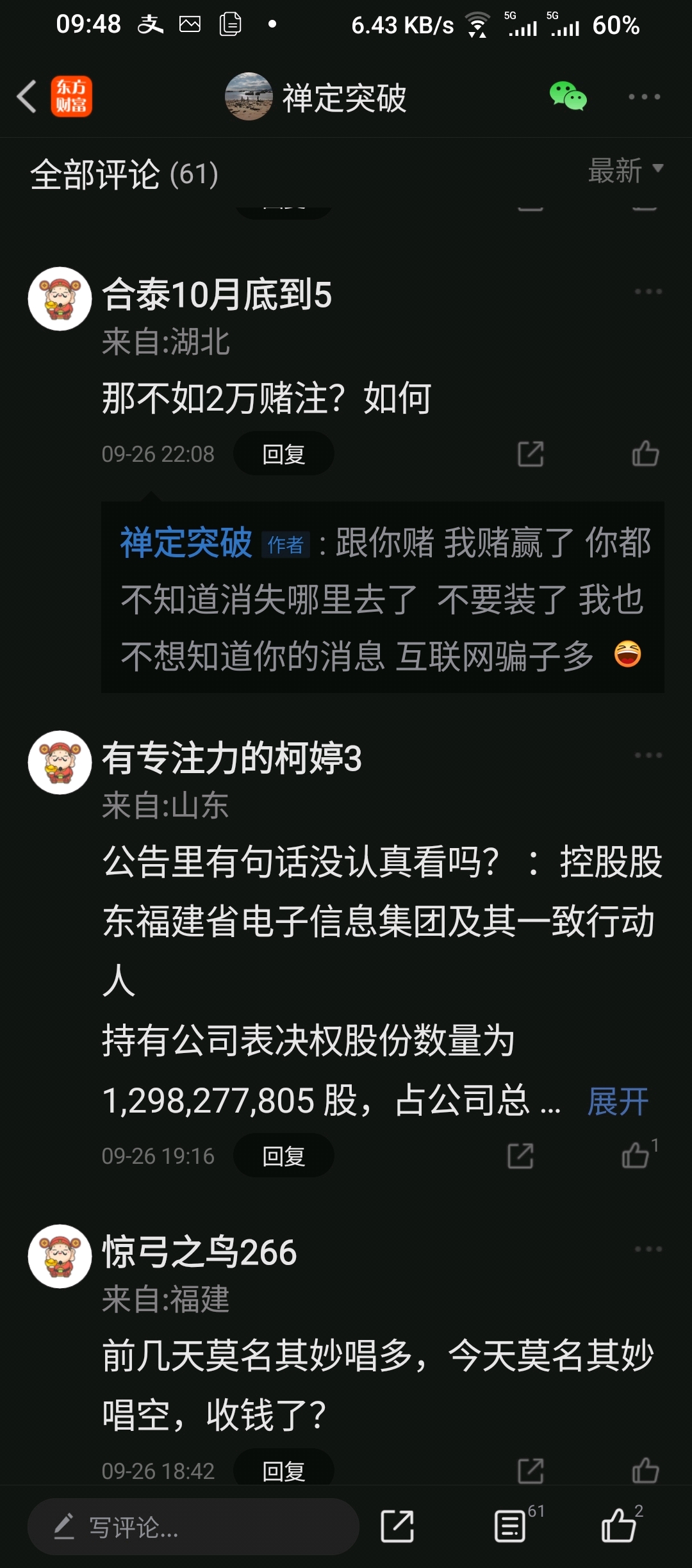 温馨提示: 1.根据《证券法》规定,禁止编造、传播虚假信息或者误导性信息,扰乱证券市场;2.用户在本社区发表的所有资料、言论等仅代表个人观点,与本网站立场无关,不对您构成任何投资建议。用户应基于自己的独立判断,自行决定证券投资并承担相应风险。《东方财富社区管理规定》