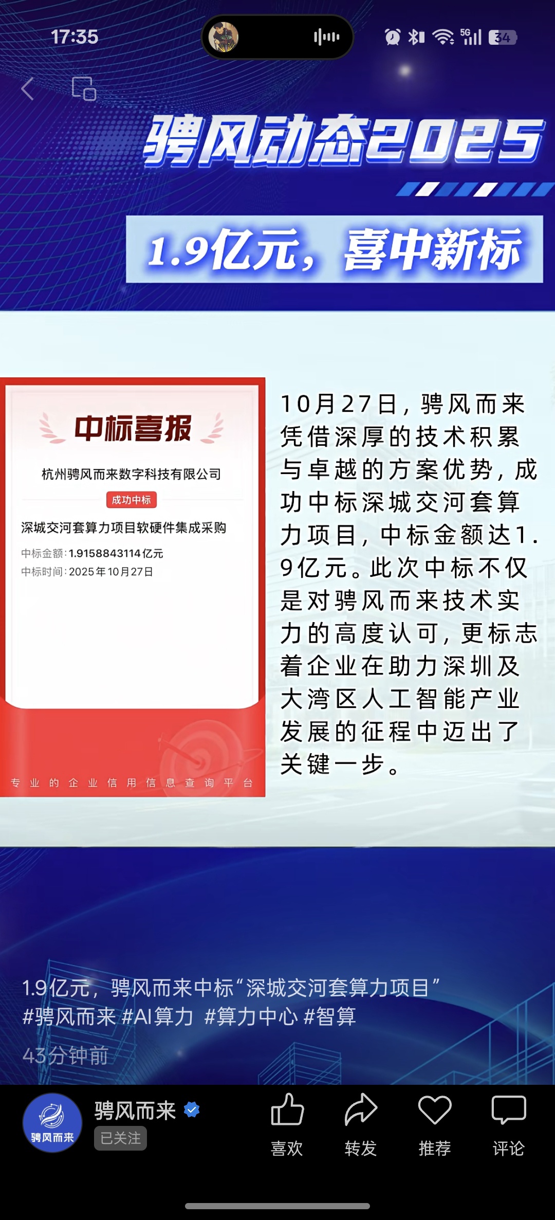 $合力泰(SZ002217)$  骋风中标1.9亿的算力合同,下周能不能拉下合泰的股价