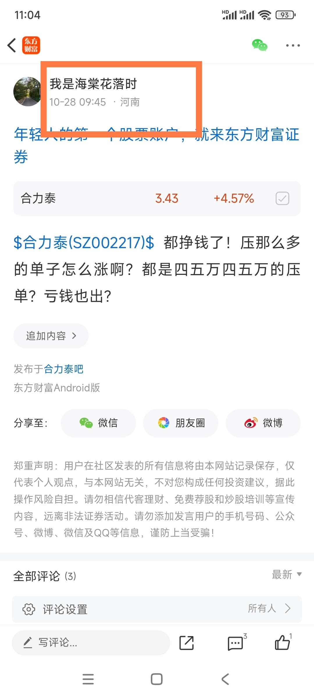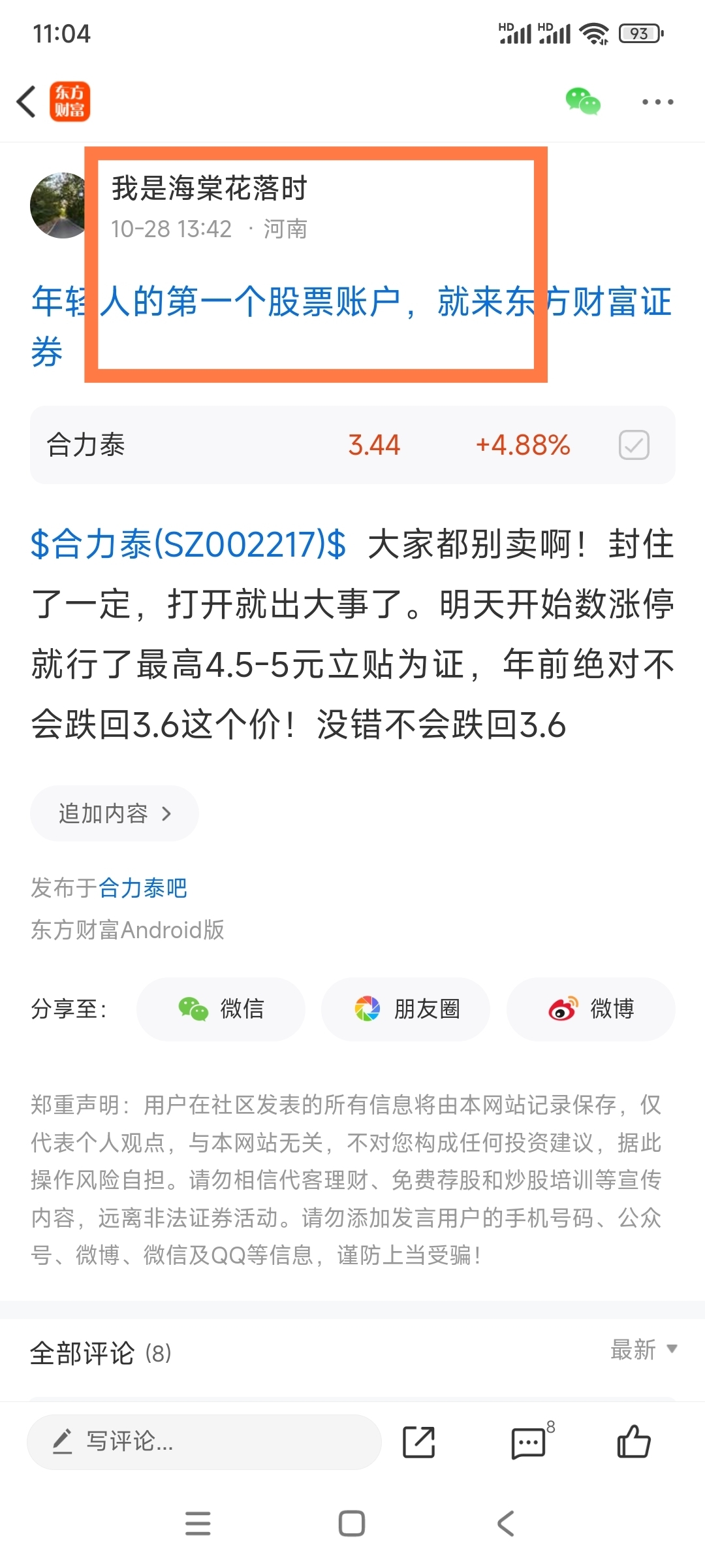 温馨提示: 1.根据《证券法》规定,禁止编造、传播虚假信息或者误导性信息,扰乱证券市场;2.用户在本社区发表的所有资料、言论等仅代表个人观点,与本网站立场无关,不对您构成任何投资建议。用户应基于自己的独立判断,自行决定证券投资并承担相应风险。《东方财富社区管理规定》