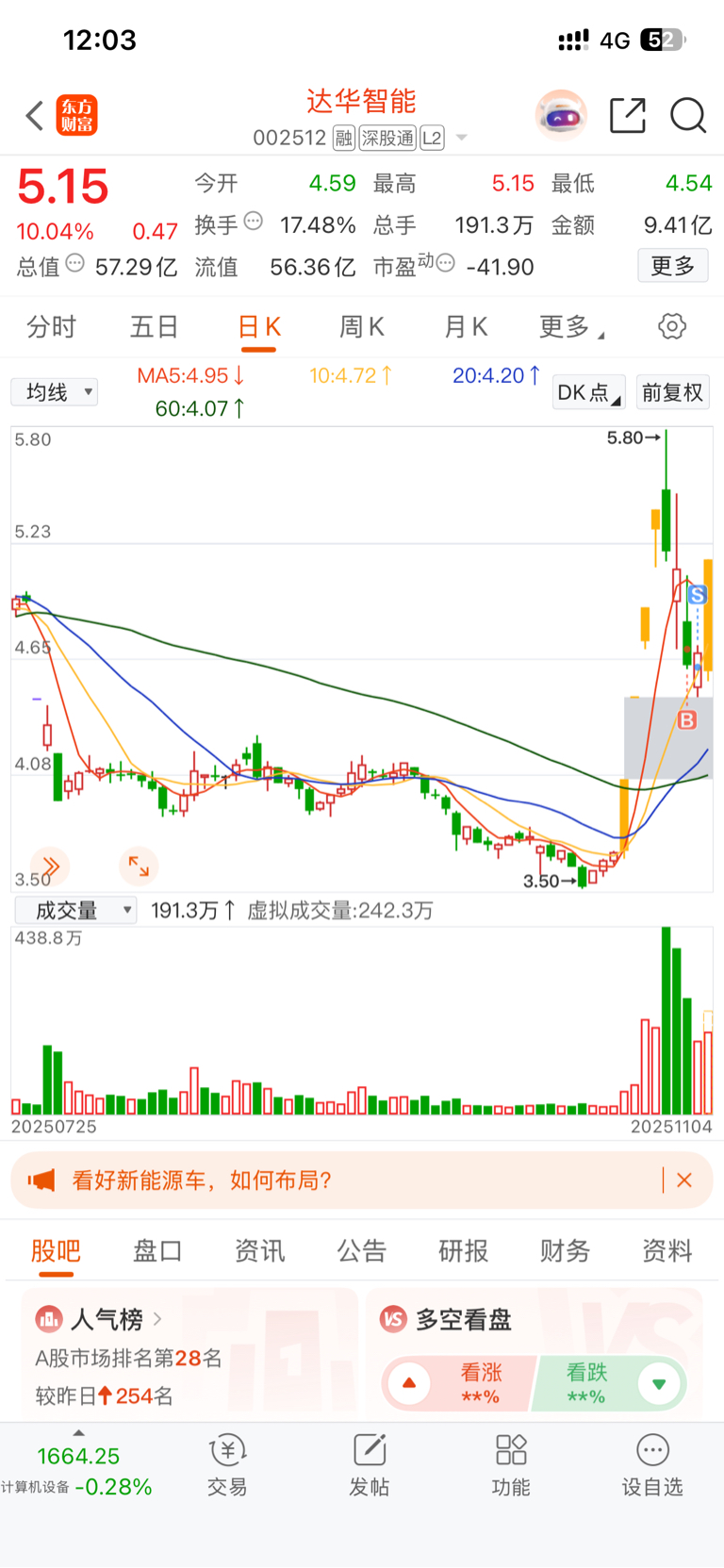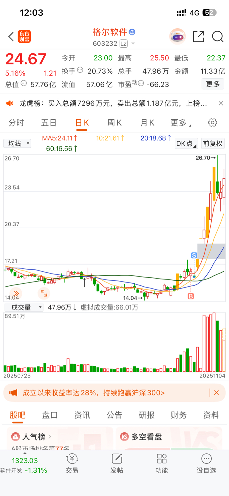10月22号卖飞了格尔,昨天卖飞了达华,一模一样的剧情,合力,下午你能争点气吗?
