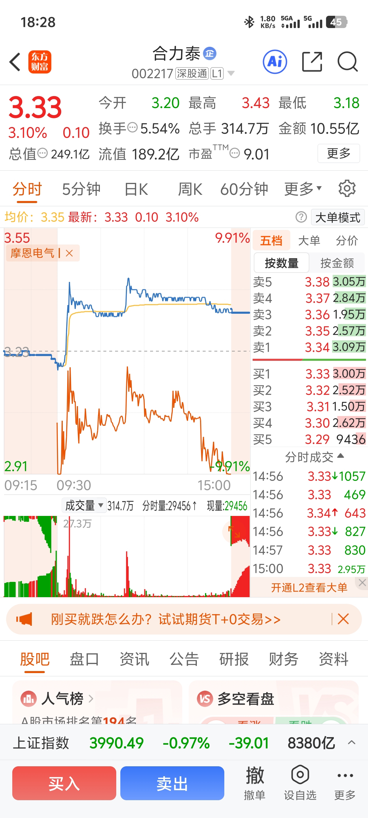 $合力泰(SZ002217)$ 所以这玩意为啥跟得是摩恩电气的走势,还是这么巧正好两个走势差不多了