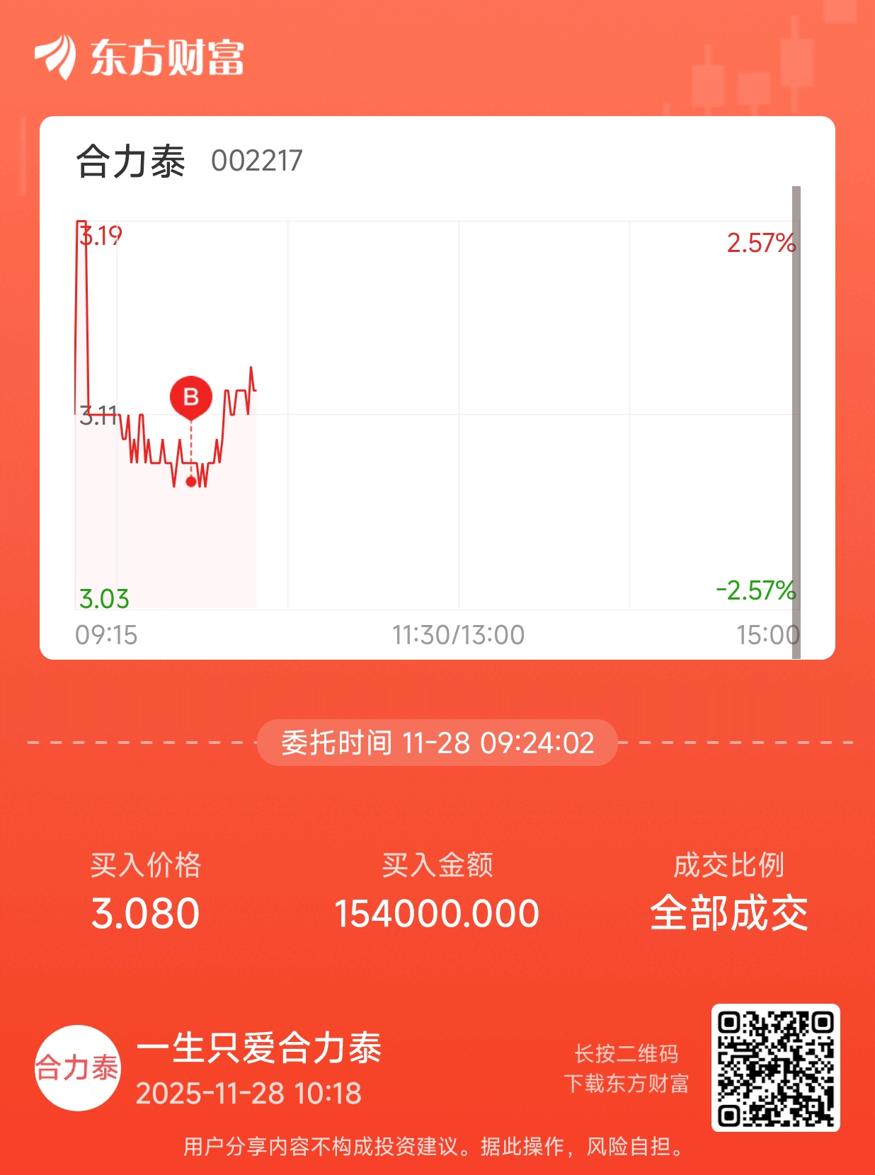温馨提示: 1.根据《证券法》规定,禁止编造、传播虚假信息或者误导性信息,扰乱证券市场;2.用户在本社区发表的所有资料、言论等仅代表个人观点,与本网站立场无关,不对您构成任何投资建议。用户应基于自己的独立判断,自行决定证券投资并承担相应风险。《东方财富社区管理规定》