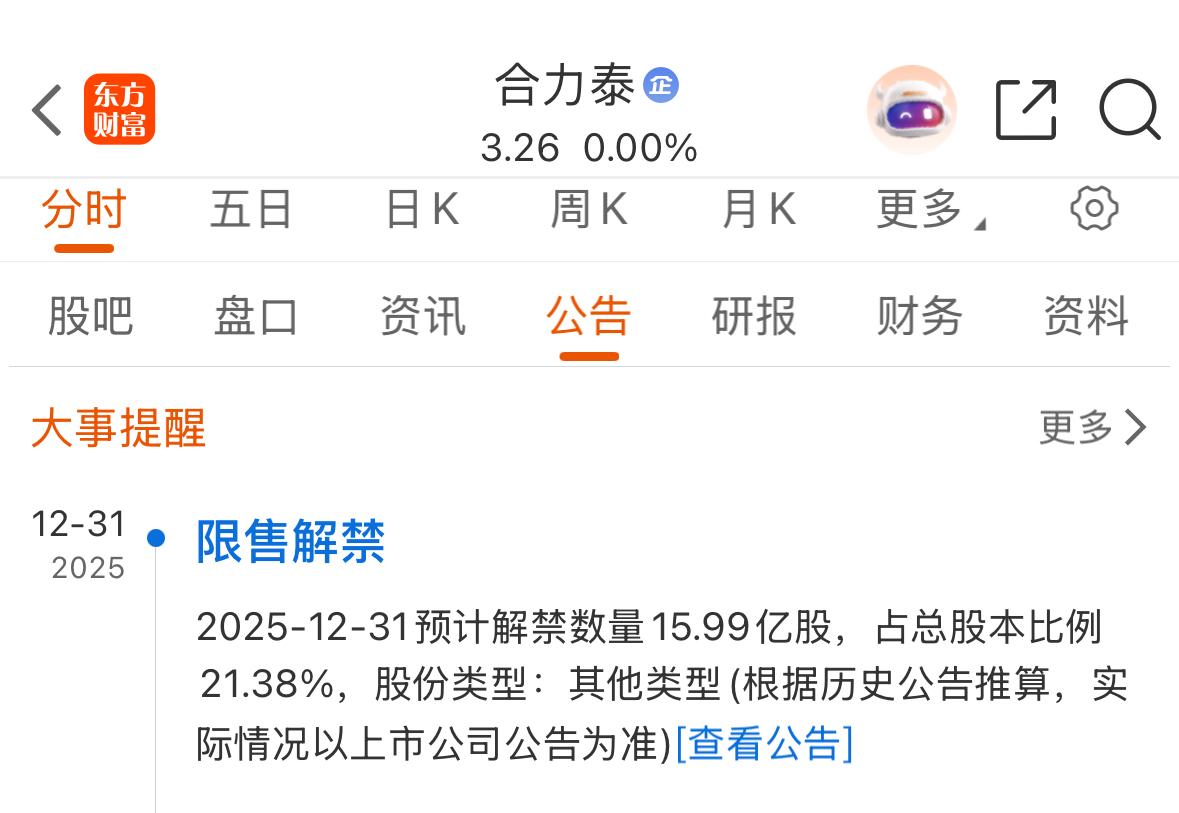 $合力泰(SZ002217)$ 19个交易日之后,占总股本21.38%的15.99亿股解禁股,怎么操作?