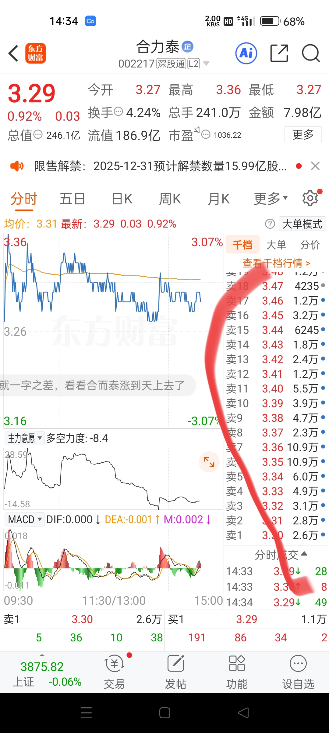 $合力泰(SZ002217)$ 主力今天把他全家的裤衩子都压上了。
