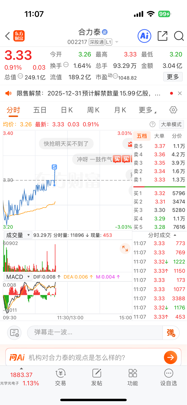 $合力泰(SZ002217)$ 呵呵,一卖三秒不够就涨了