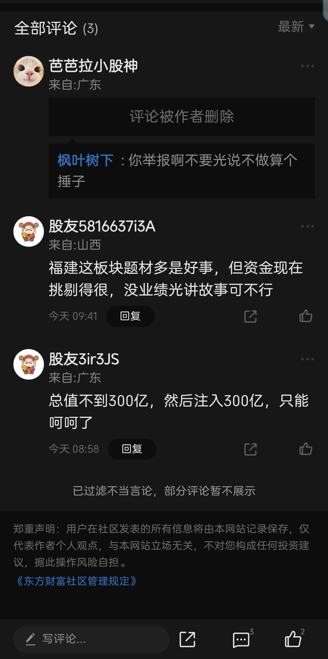 大家要警惕这种造谣编撰小作文的账号,什么福建注资300亿合力泰的小作文,我在评论区拆穿她她立马删我评论掩盖,还拉黑我账号哈哈哈