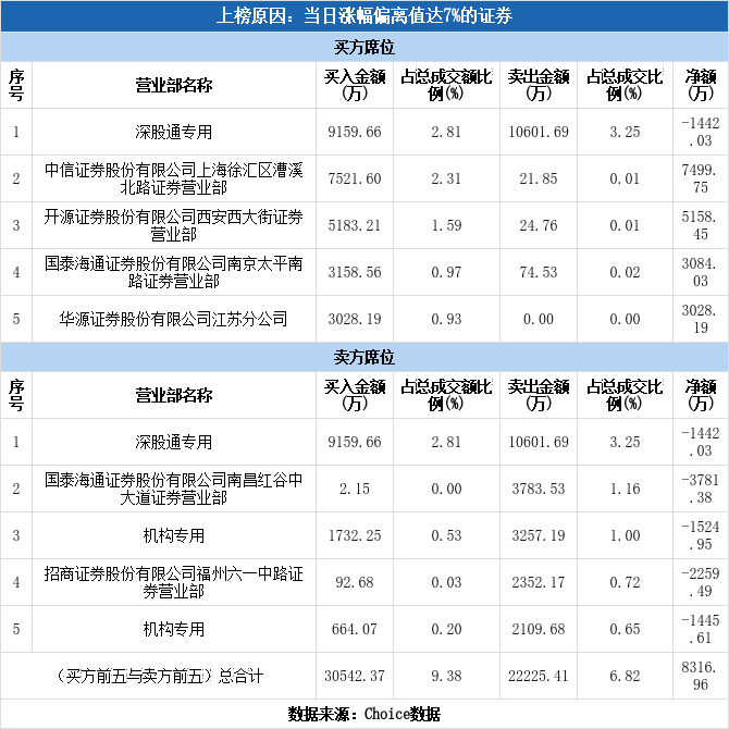 多主力现身龙虎榜,合力泰涨停(12-09)