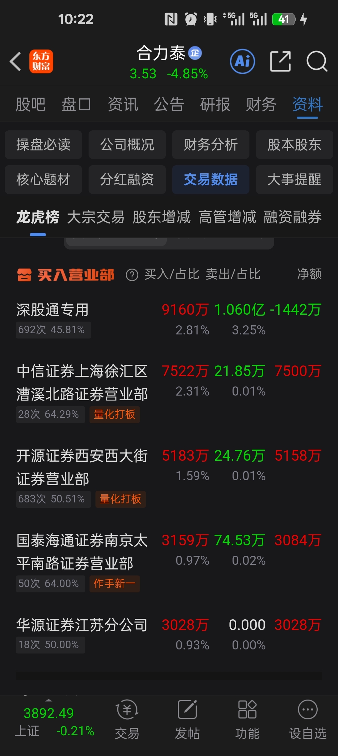 $合力泰(SZ002217)$ 前天涨停两大量化机构在里面这两天疯狂踢他们
