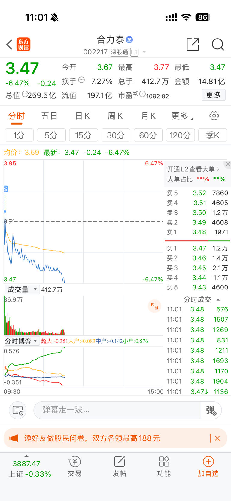 $合力泰(SZ002217)$ 什么叫水平,主力,你来啊,昨天套我我跑不了,看看我今天啥水平。