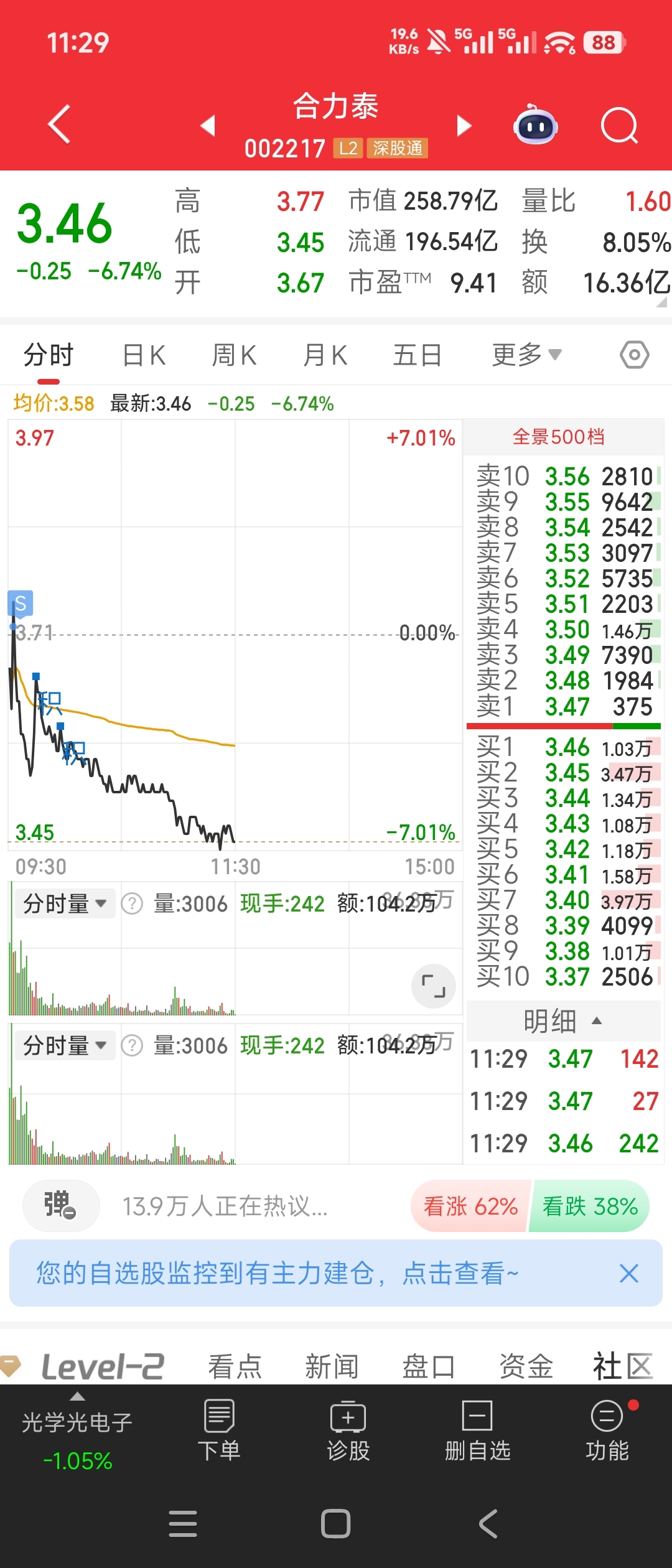 $合力泰(SZ002217)$ 以为今天要深水开,结果还给机会水上跑了