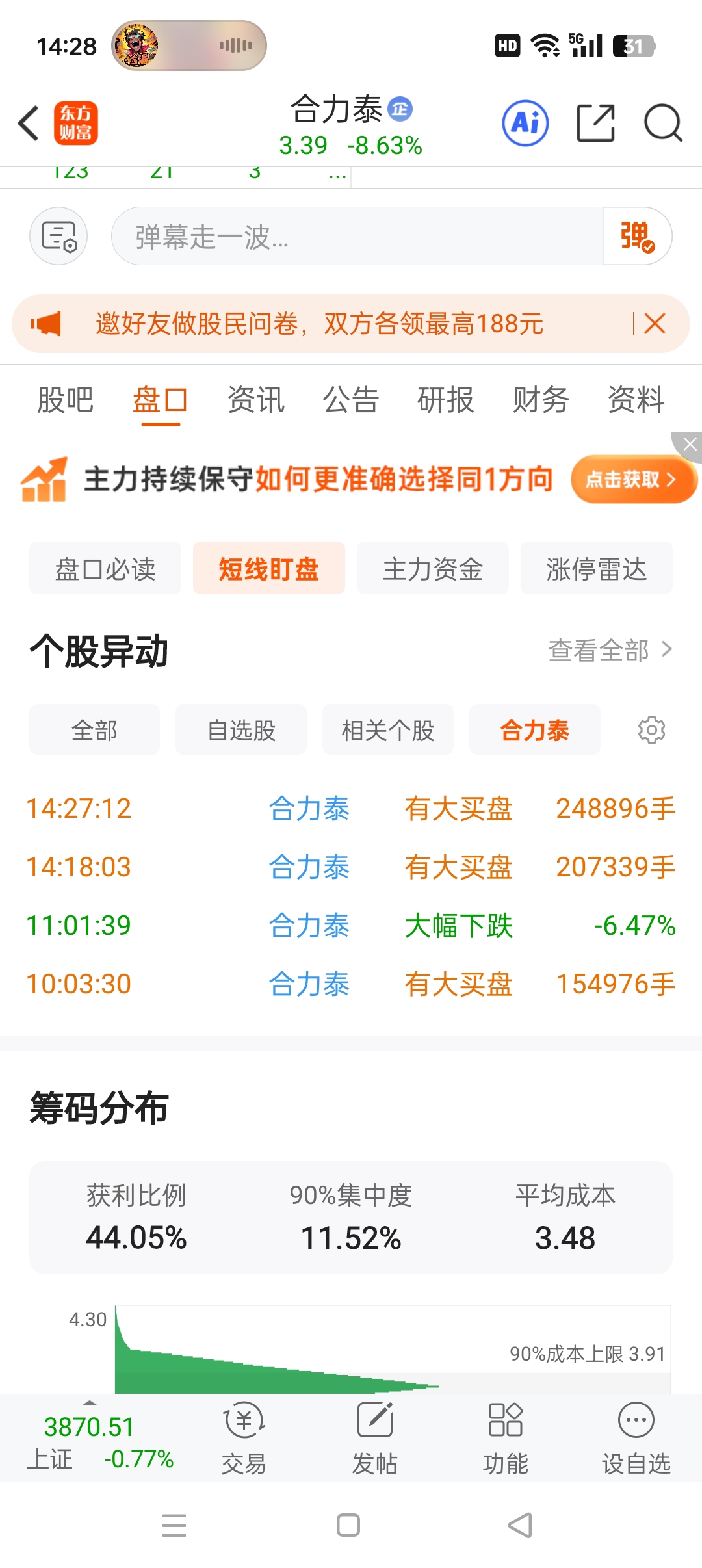 温馨提示: 1.根据《证券法》规定,禁止编造、传播虚假信息或者误导性信息,扰乱证券市场;2.用户在本社区发表的所有资料、言论等仅代表个人观点,与本网站立场无关,不对您构成任何投资建议。用户应基于自己的独立判断,自行决定证券投资并承担相应风险。《东方财富社区管理规定》