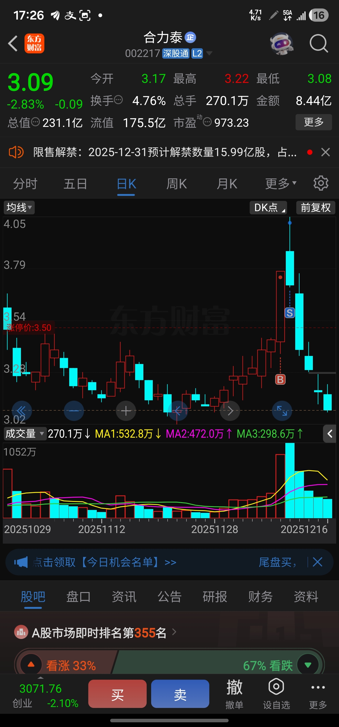 $合力泰(SZ002217)$ 对不起兄弟们,都给我