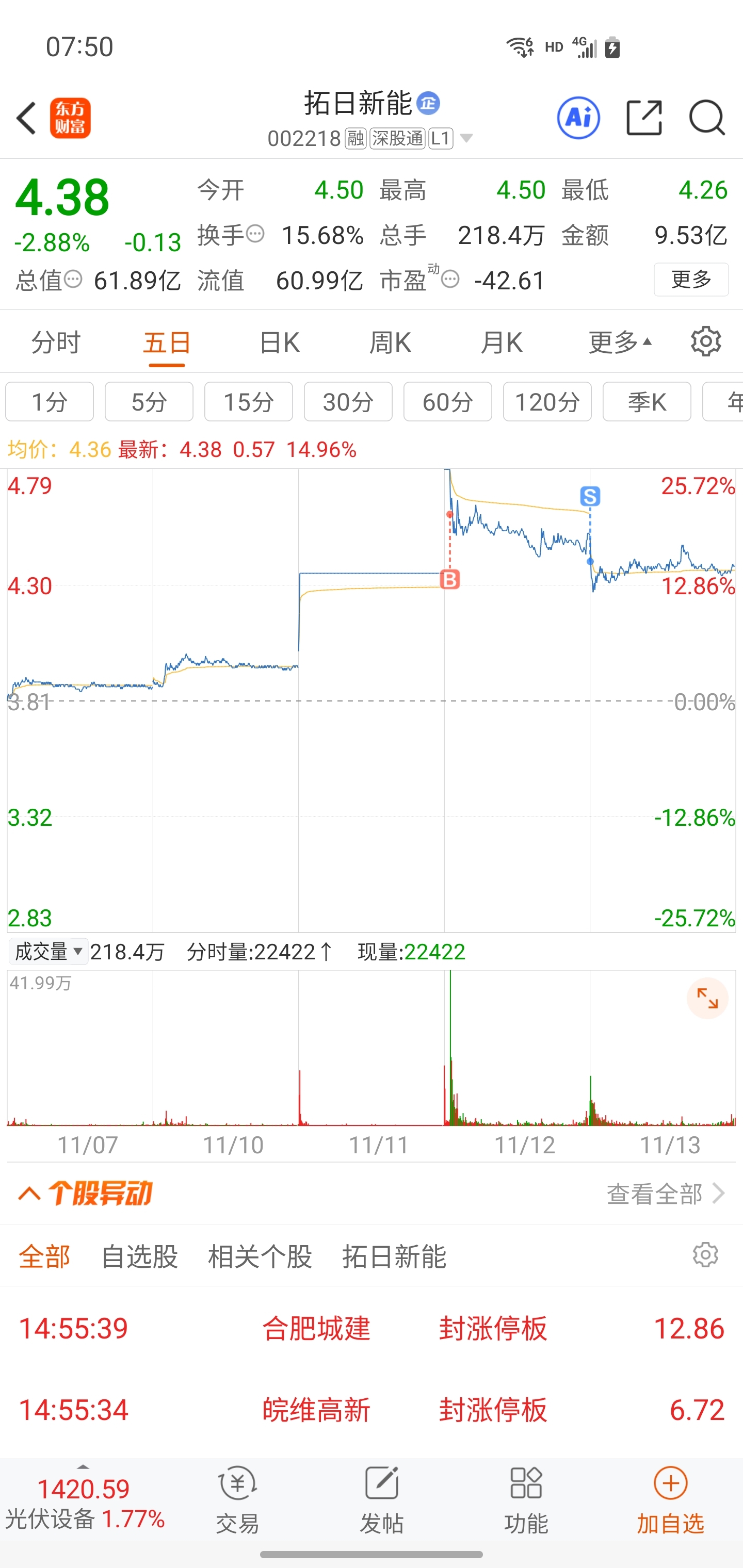 $拓日新能(SZ002218)$ 一字板开,砸下来,需要有强度拉升,最好是打回封包,或者站上均线再买也不迟。