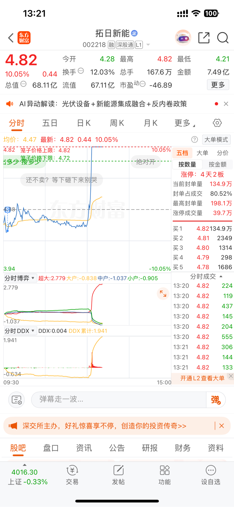 温馨提示: 1.根据《证券法》规定,禁止编造、传播虚假信息或者误导性信息,扰乱证券市场;2.用户在本社区发表的所有资料、言论等仅代表个人观点,与本网站立场无关,不对您构成任何投资建议。用户应基于自己的独立判断,自行决定证券投资并承担相应风险。《东方财富社区管理规定》