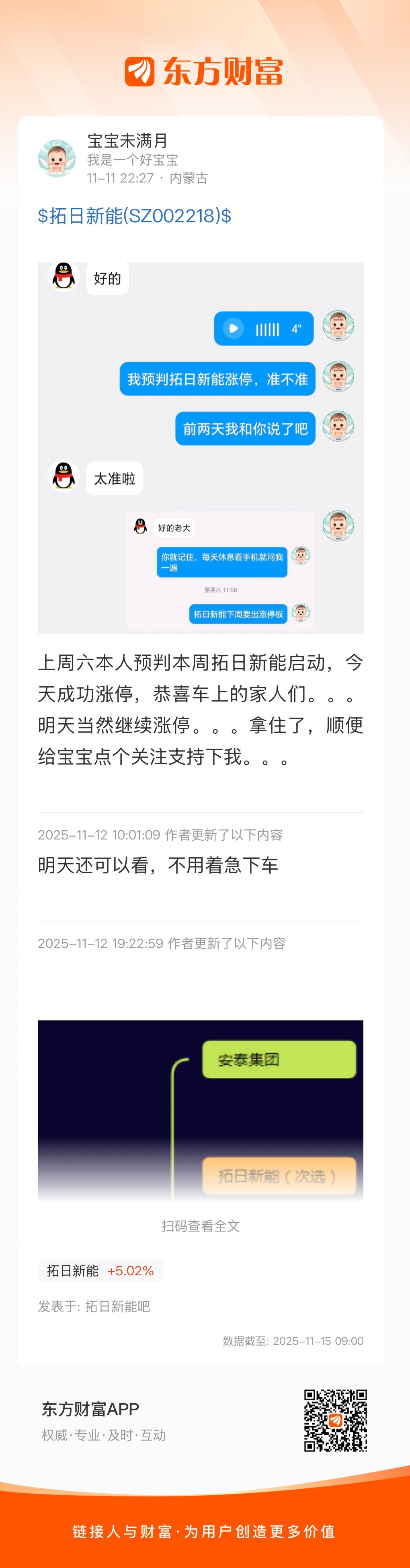 温馨提示: 1.根据《证券法》规定,禁止编造、传播虚假信息或者误导性信息,扰乱证券市场;2.用户在本社区发表的所有资料、言论等仅代表个人观点,与本网站立场无关,不对您构成任何投资建议。用户应基于自己的独立判断,自行决定证券投资并承担相应风险。《东方财富社区管理规定》