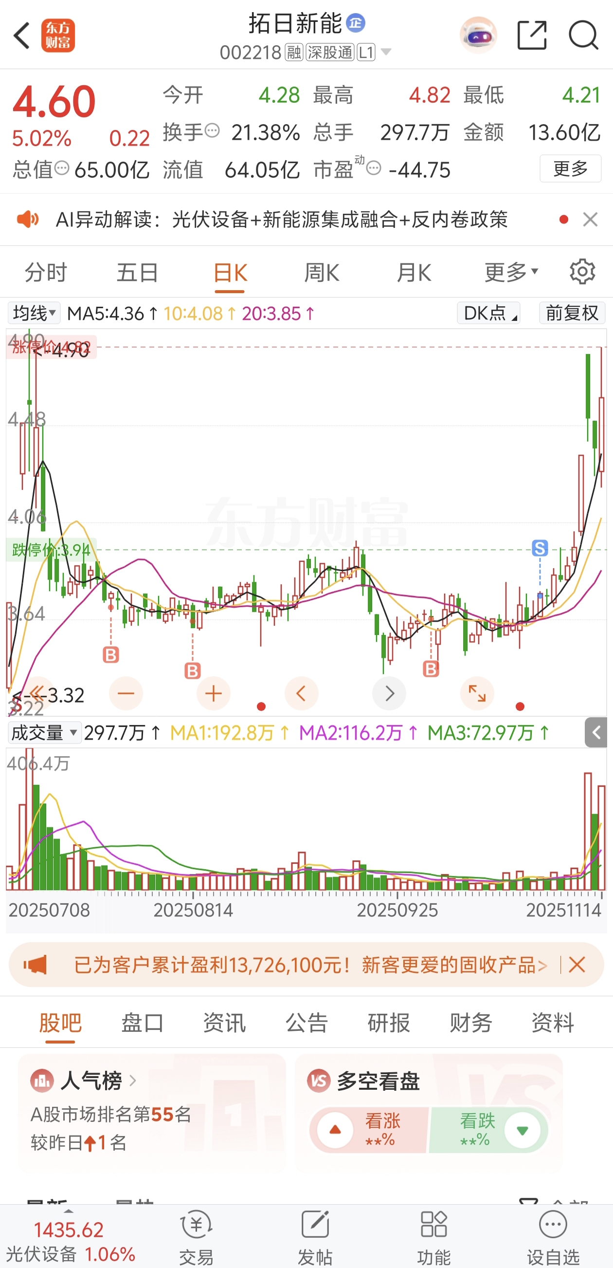 $拓日新能(SZ002218)$ 真是牛个比了,没法说了!唉
