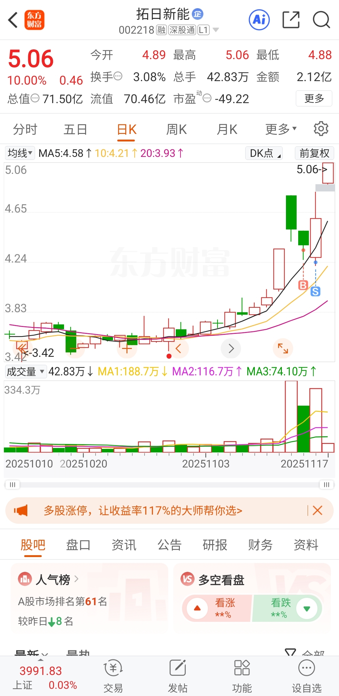 $拓日新能(SZ002218)$ 果然是买什么什么跌,卖什么什么涨