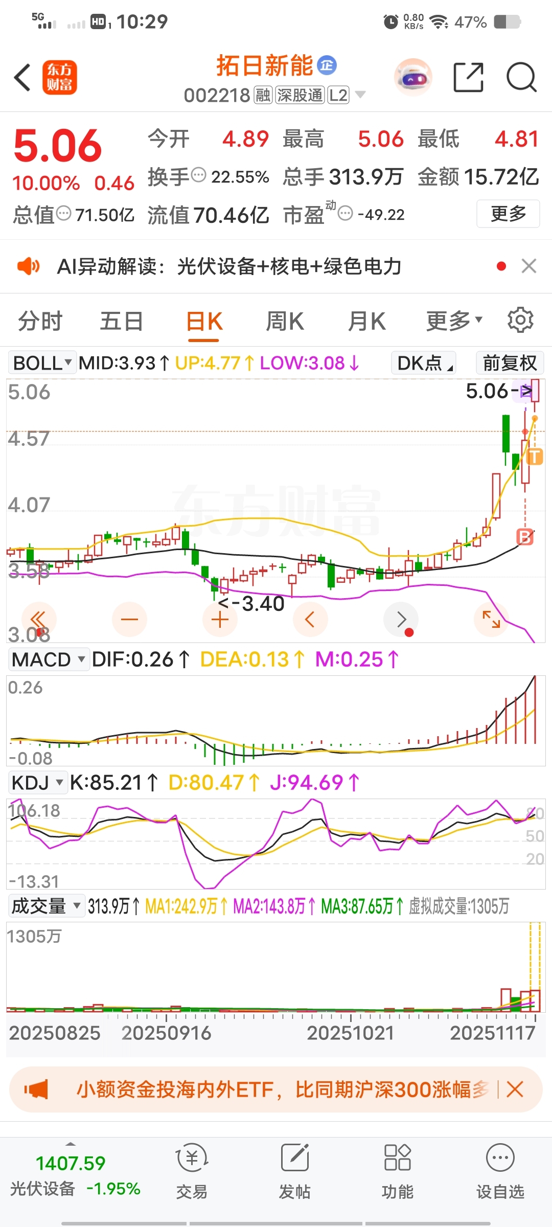 $拓日新能(SZ002218)$ 名字起的好,比什么都强,感谢主力送的大飞机,妥妥的孚日补涨龙,先看25个点