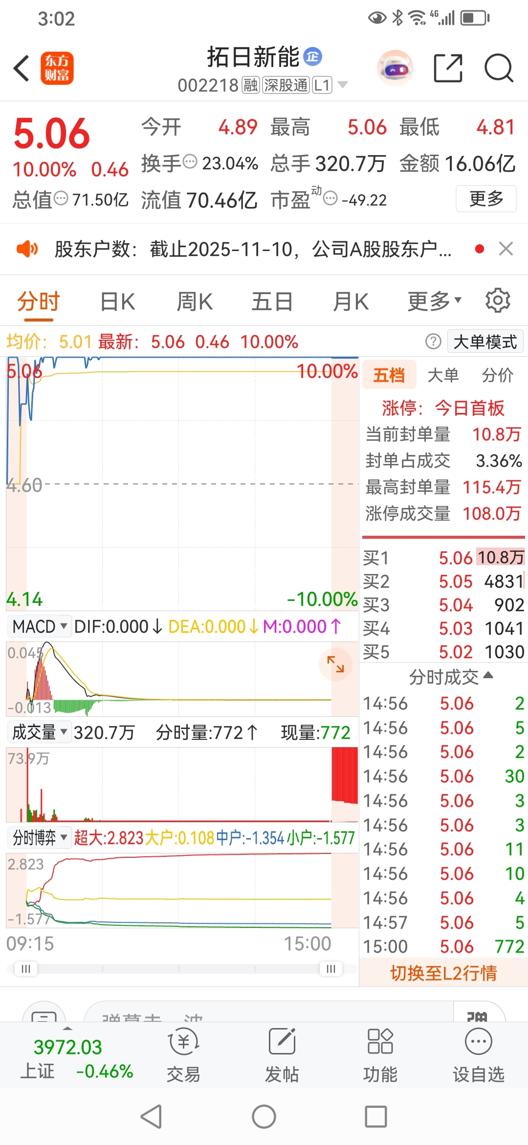 方军,今天操盘拓日新能,放量涨停板,二类看好。