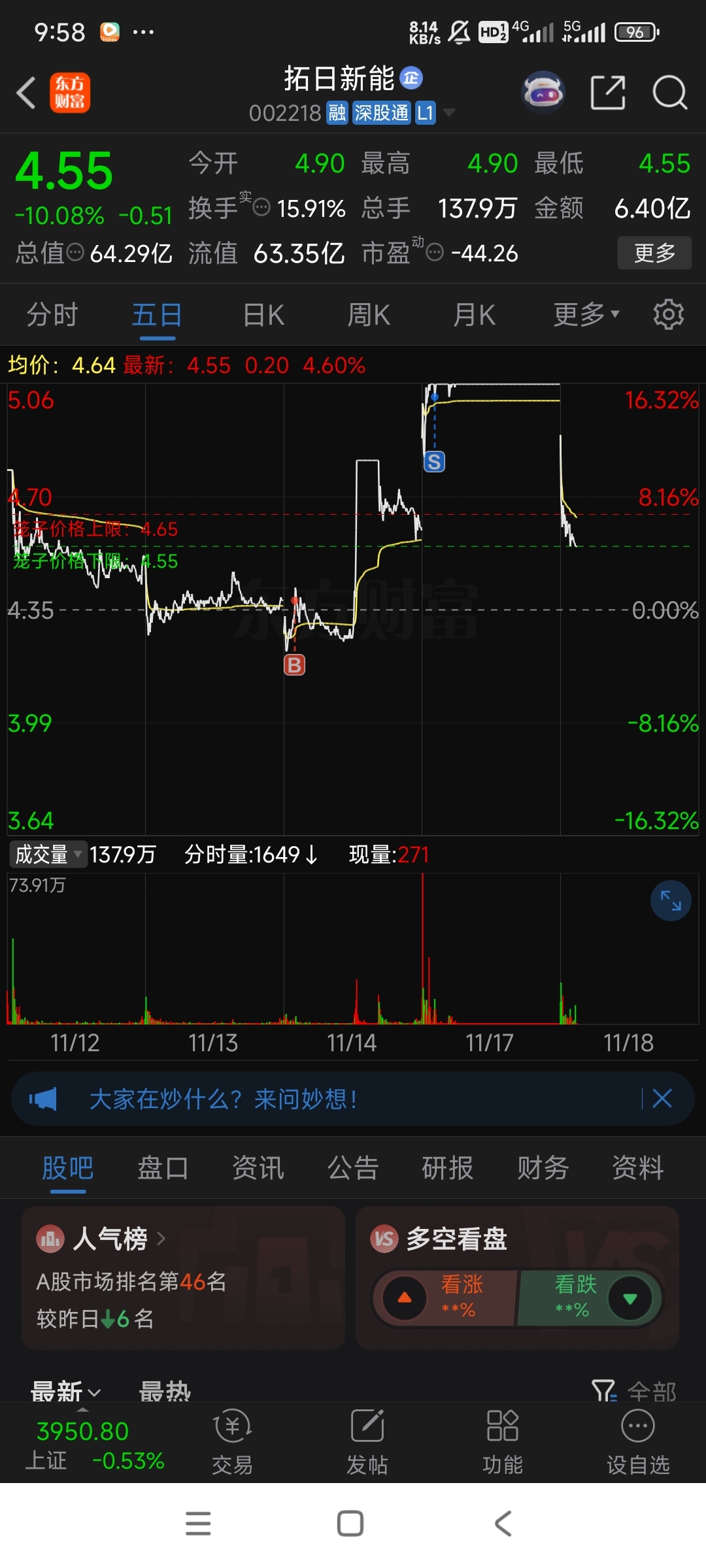 $拓日新能(SZ002218)$ 还好昨天走掉了,昨天早盘一直炸板,就跑了