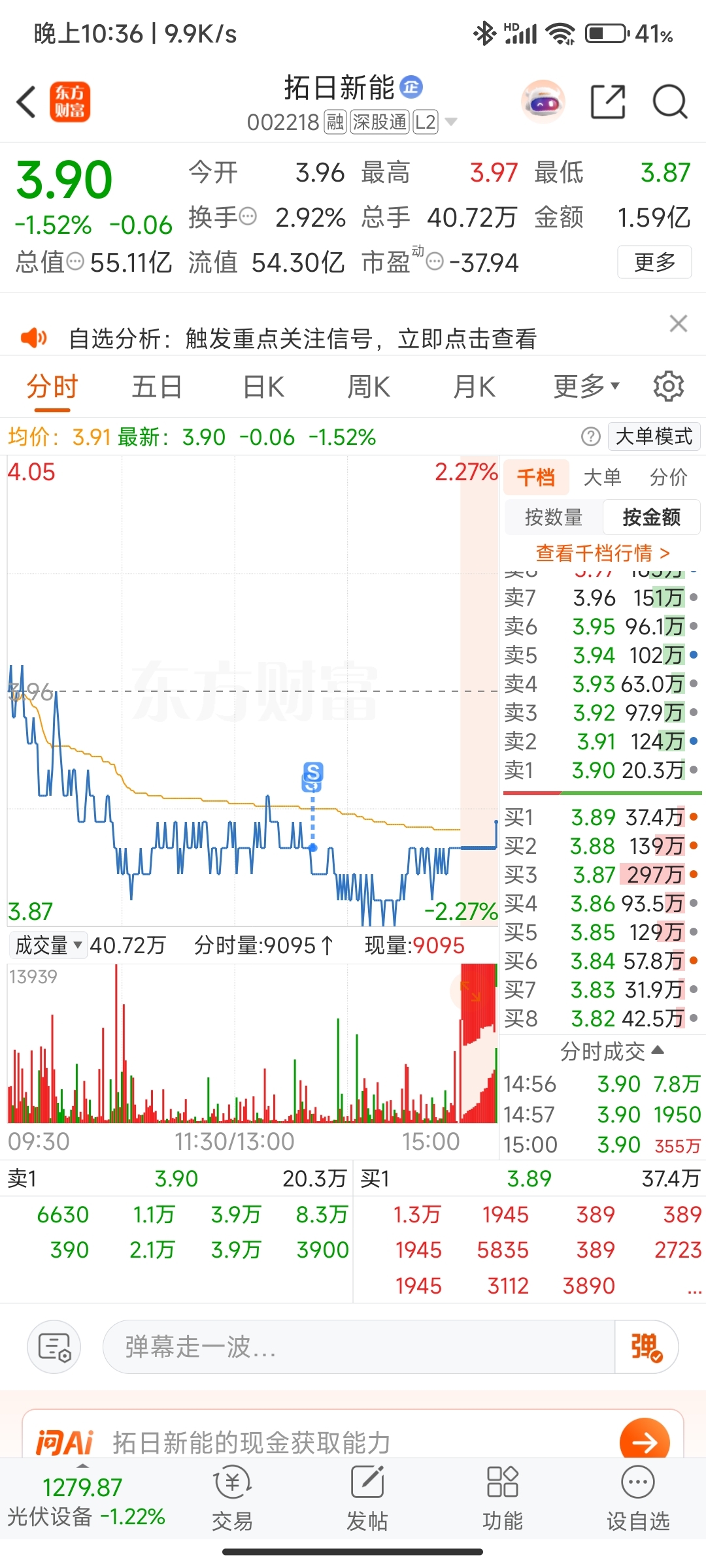$拓日新能(SZ002218)$ 有点难受,感觉卖飞了。本来想拿长线的,结果还是小亏走人了。跌下来这么多大级别反弹都没有。还是恐惧了