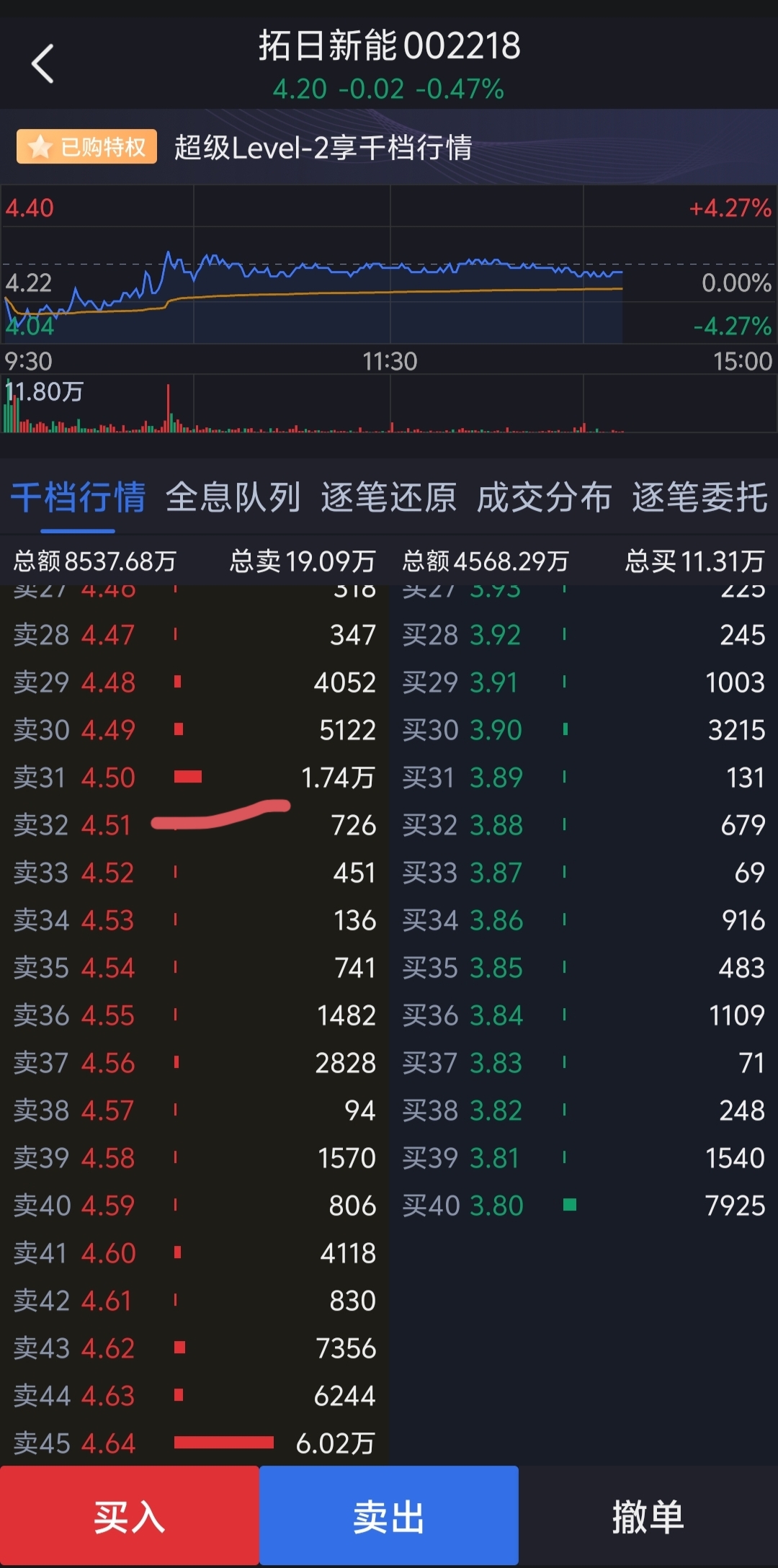 主力兄弟4.22.4.50.4.60采取三段压盘与随时对敲拉涨停模式测试盘面。今天盘面洗的差不多了。胆小鬼们也跑的差不多了。主力兄弟是不是该撤4.22和4.50的压单瞬间拉涨停开始一马平川驰骋沙场踏日踏出新高度啊哈哈。