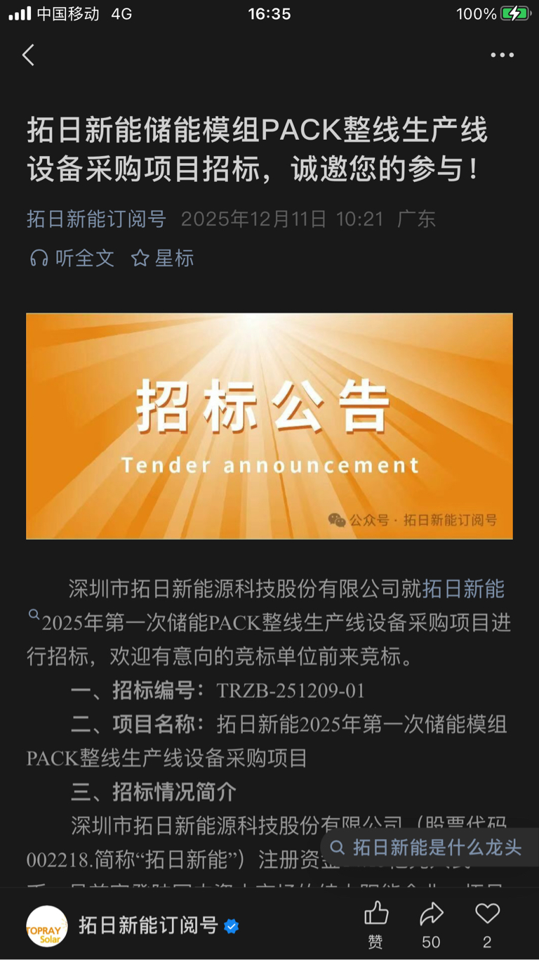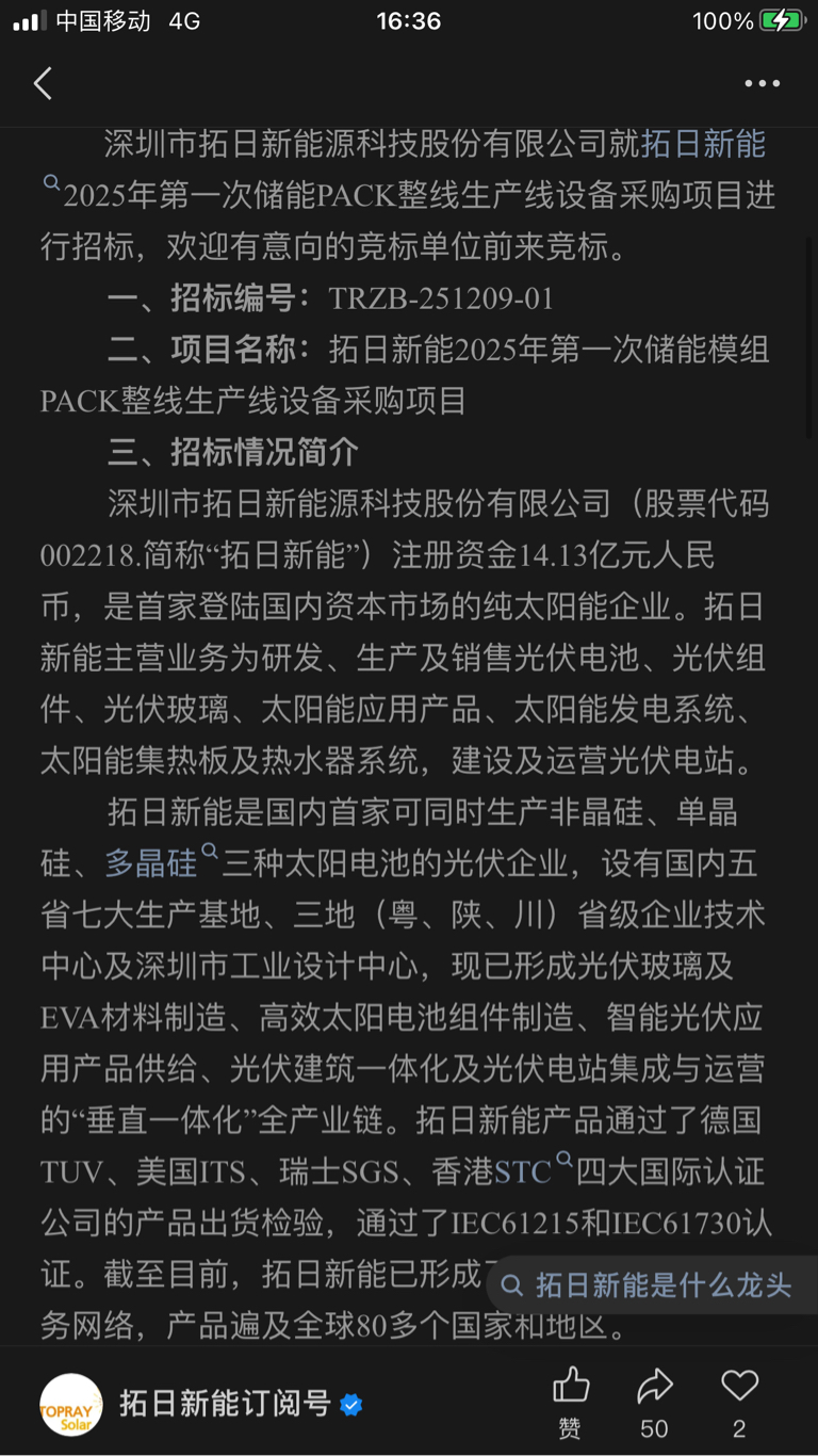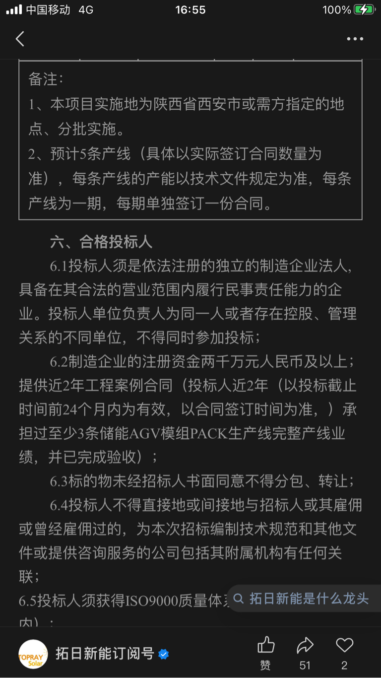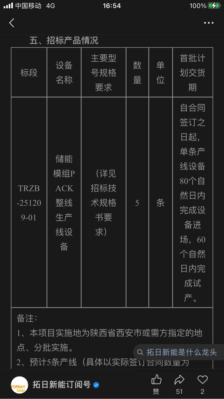 12月26日钙钛矿电池第一期5条生产线开标,90天安装,60天调试完成生产!明天