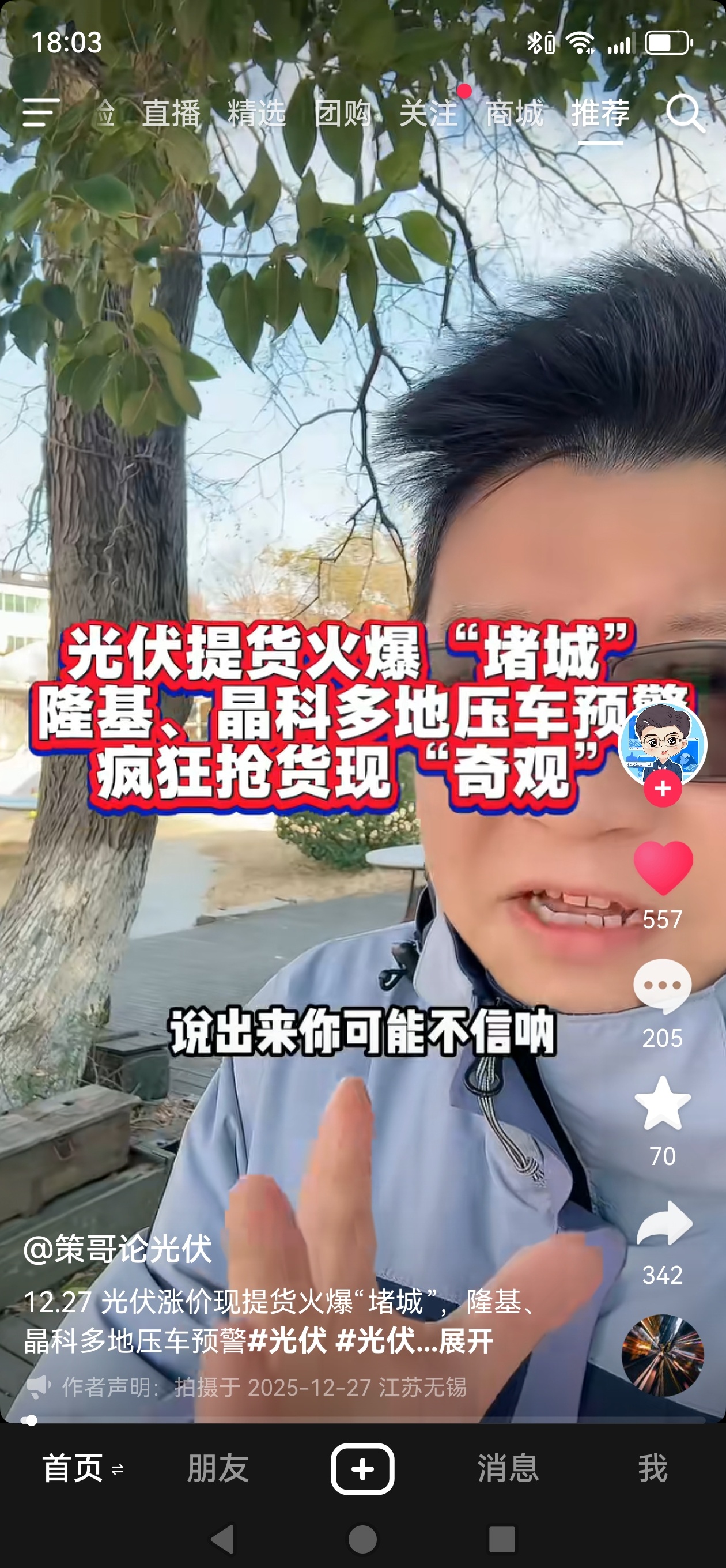 光伏都装不过来了,说是物流车把半个区都堵了,利好这个吗?