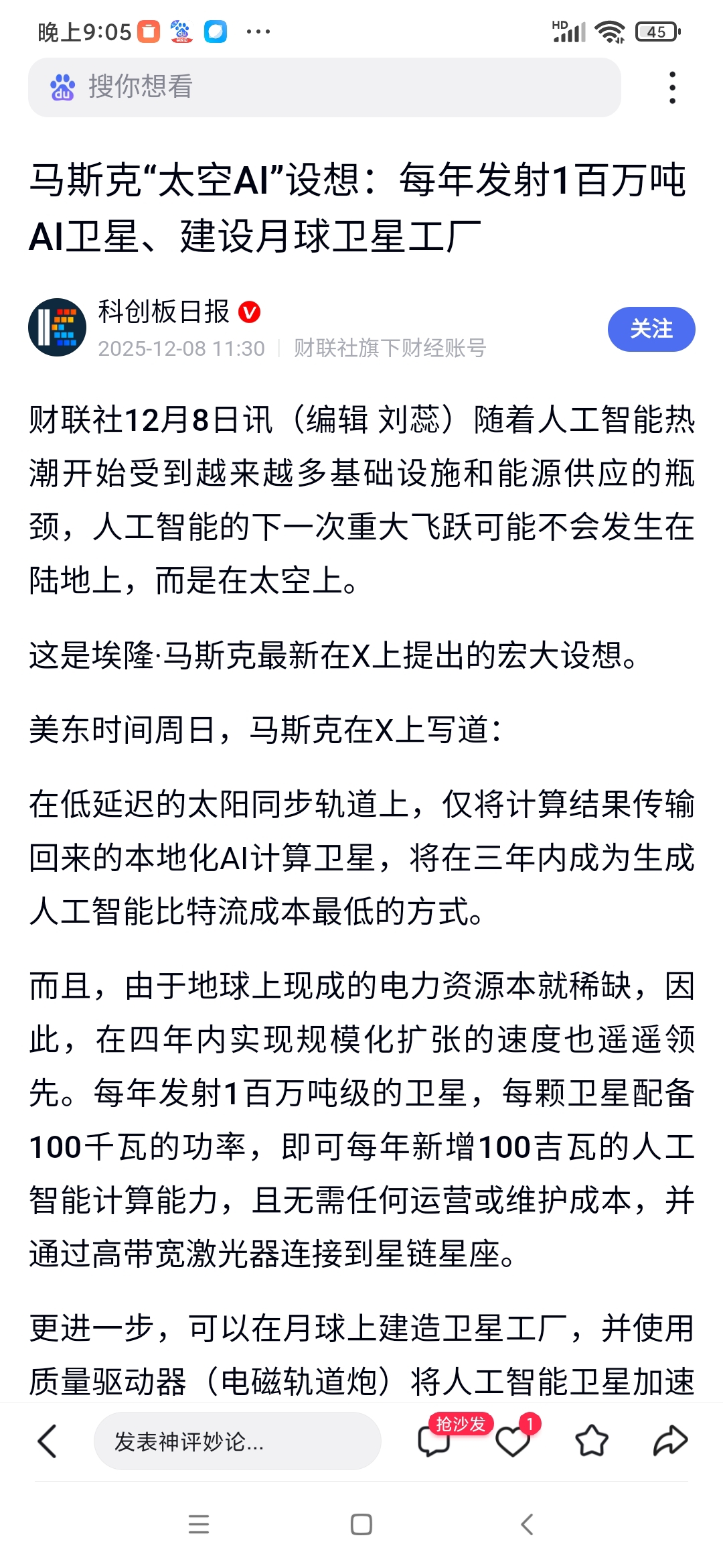 (谐音唾日新能)马斯克万亿太空算力概念,太空AI太阳能卫星,太空基建,太空光伏,