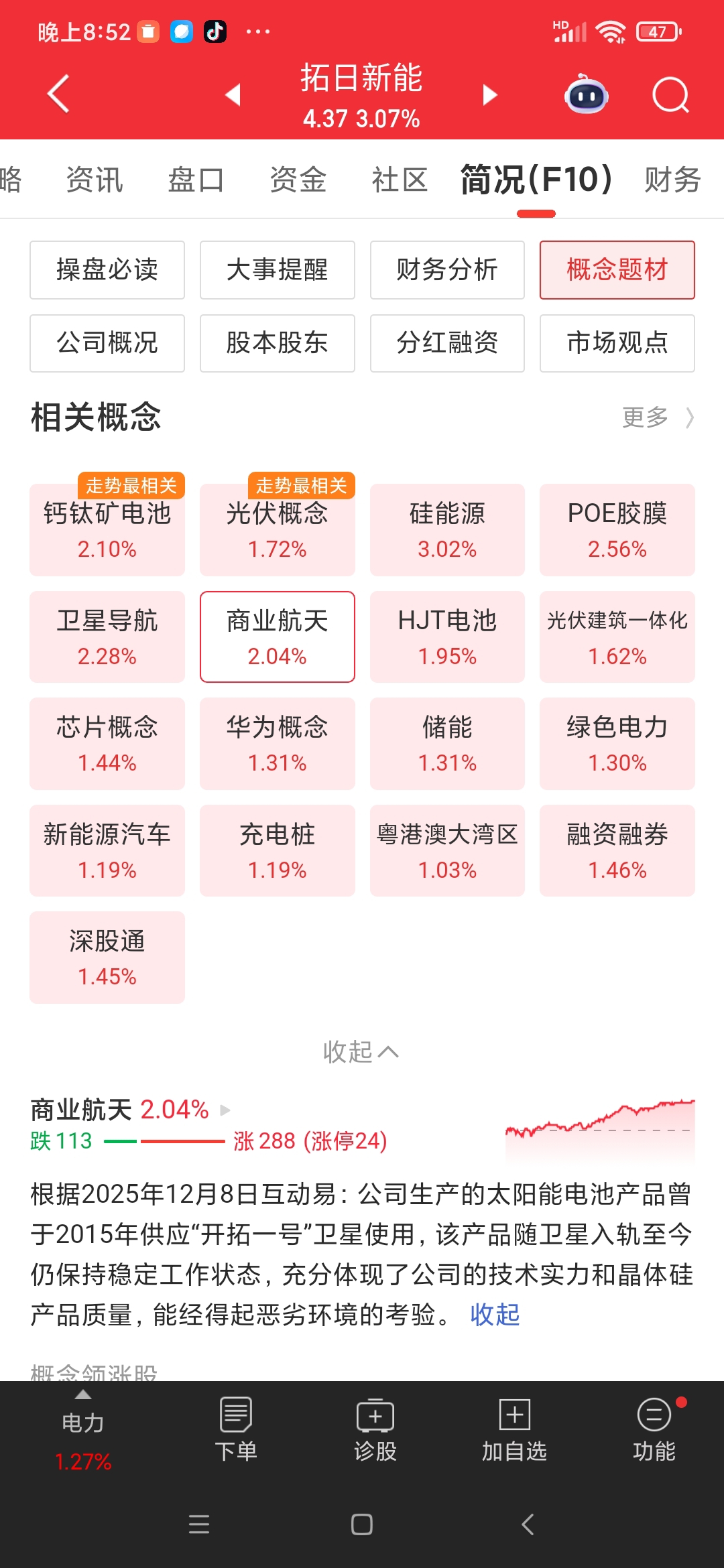 $拓日新能(SZ002218)$ (谐音唾日新能)马斯克万亿太空算力概念,太空AI太阳能卫星,太空基建,太空光伏,4元超小盘实际流通20多亿元的商业航天,商业卫星,卫星太阳翼(同花顺已经添加相关概念),比中国卫通和航天电子更有吸引力和想象力!