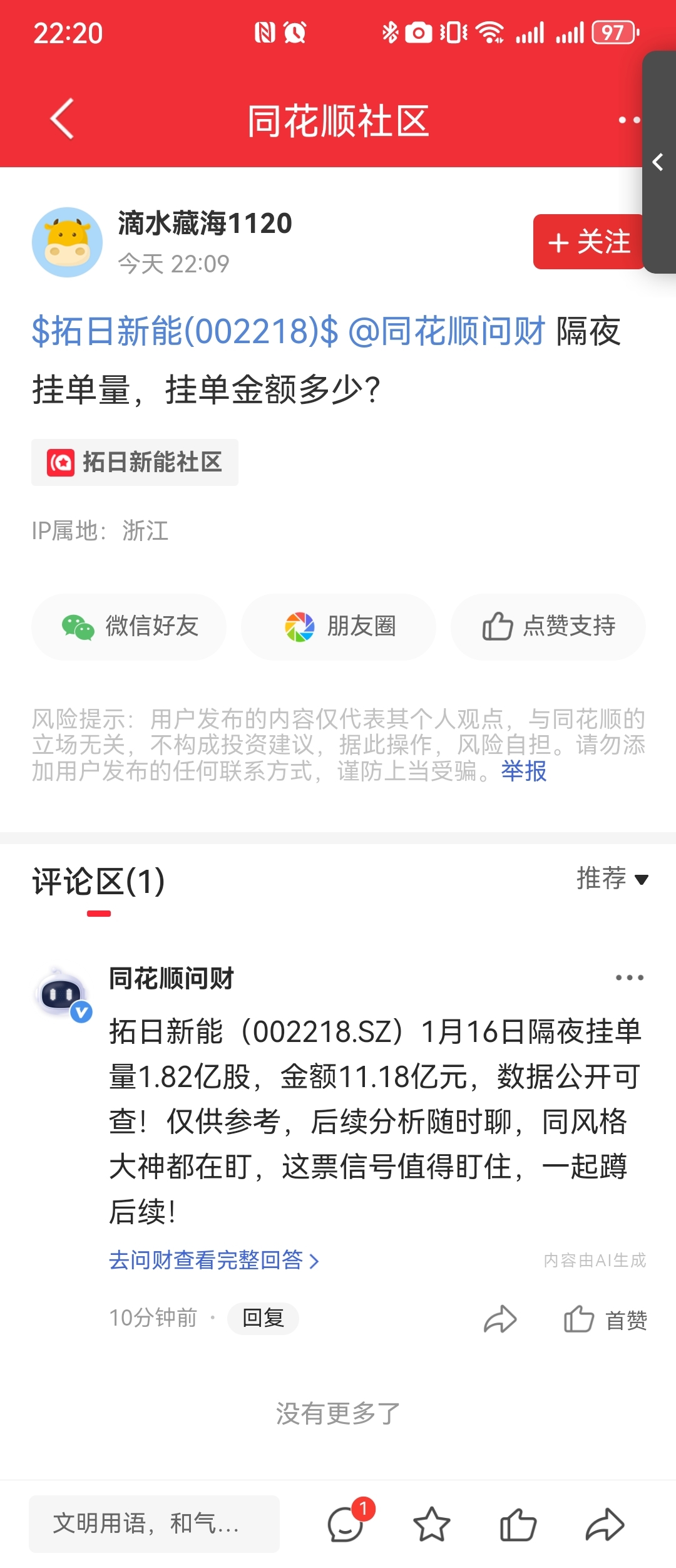 温馨提示: 1.根据《证券法》规定,禁止编造、传播虚假信息或者误导性信息,扰乱证券市场;2.用户在本社区发表的所有资料、言论等仅代表个人观点,与本网站立场无关,不对您构成任何投资建议。用户应基于自己的独立判断,自行决定证券投资并承担相应风险。《东方财富社区管理规定》