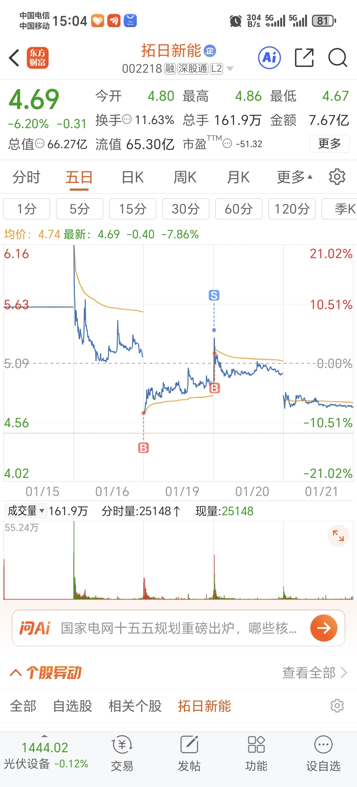 今天下午压的太狠了,他根本冲不上去,早知道今天上午4.8就跑了,没有这么多糟心事,他除非,跌停我亏5个点,我反手加仓,就怕后面越补越多,越补越低,那就废了