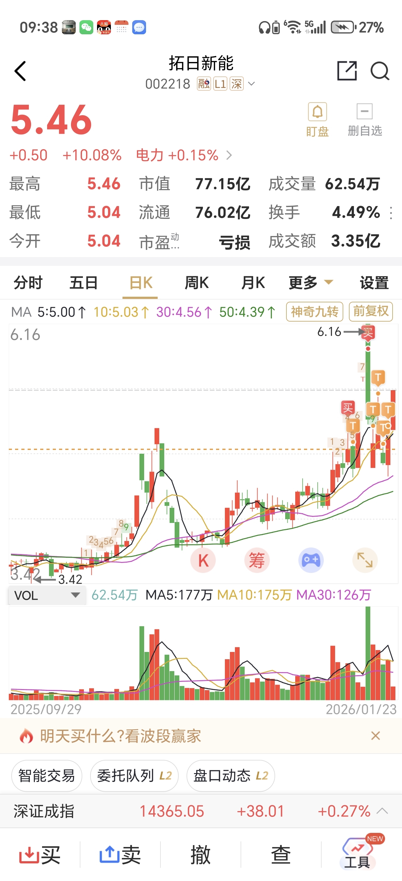 这票前面半仓吃了2个涨停,第三个竞价涨停没及时卖,T来T去,昨天莫名其妙全仓了