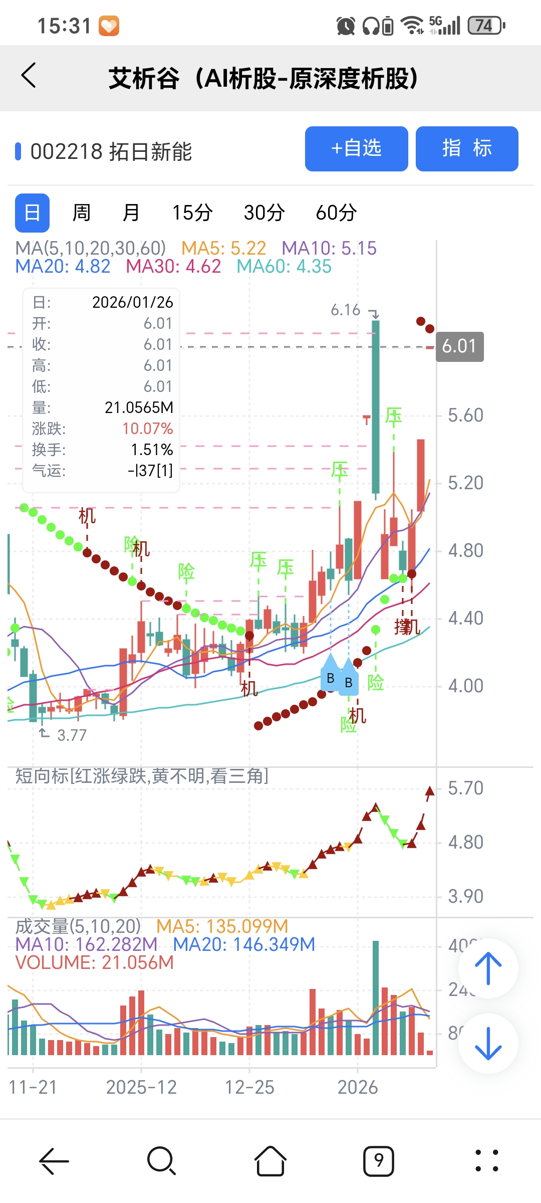 机会:股价上穿艾短波或绿变红、红字;