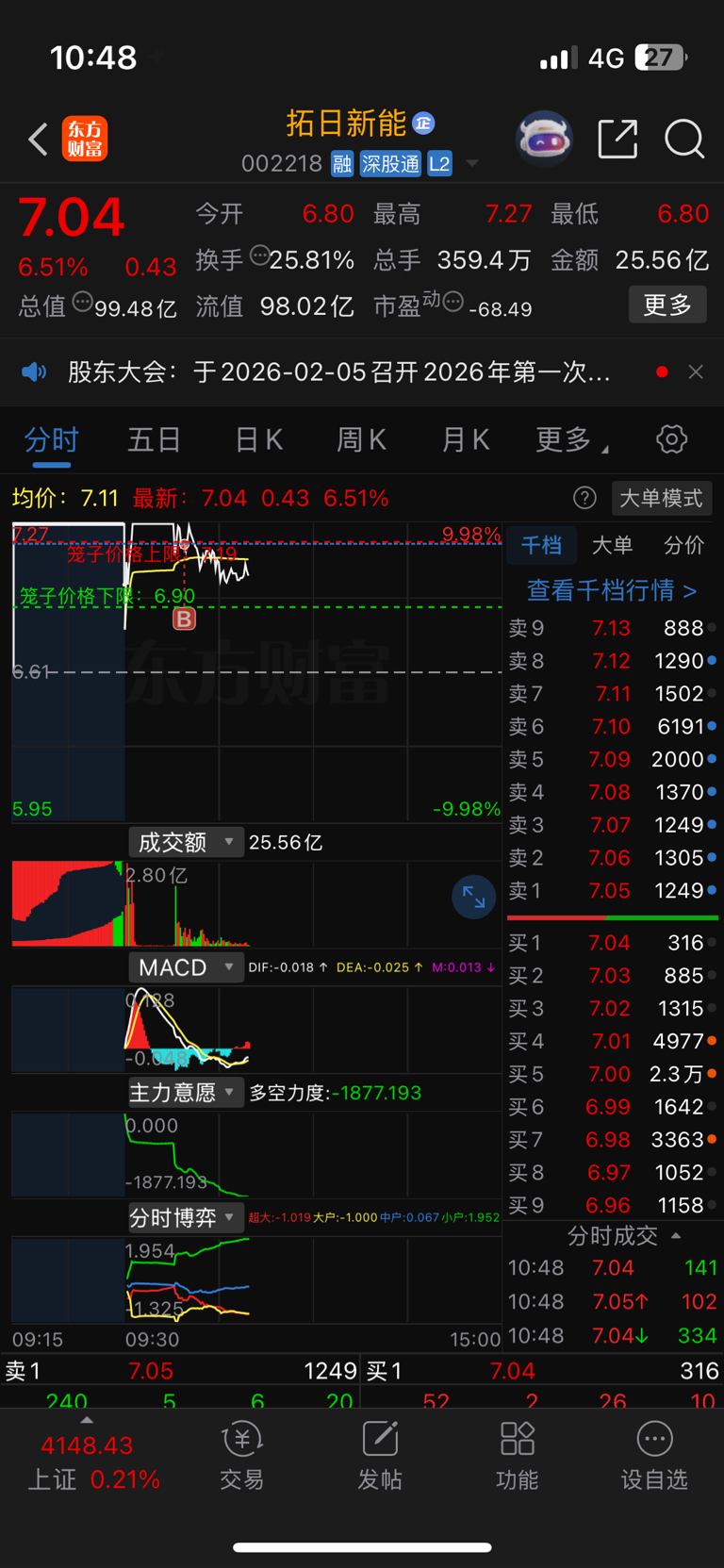 $拓日新能(SZ002218)$ 打板,失败?