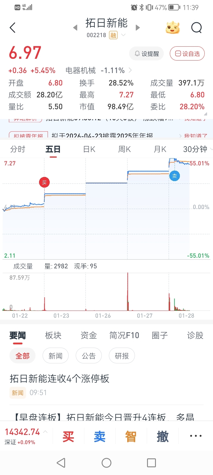 $拓日新能(SZ002218)$ 有没有跟我一样操作的兄弟,预期一字板没有达成,爆量快开板就走了。