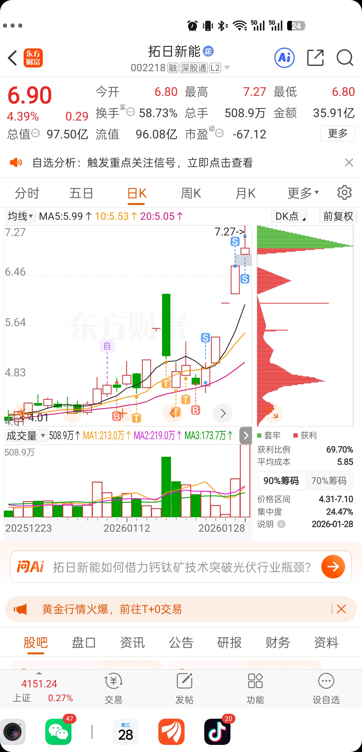 $拓日新能(SZ002218)$ 明天大概率向下走,这个庄着是有点坏,总体趋势是向上的。找机会低吸吧 短期会洗盘。