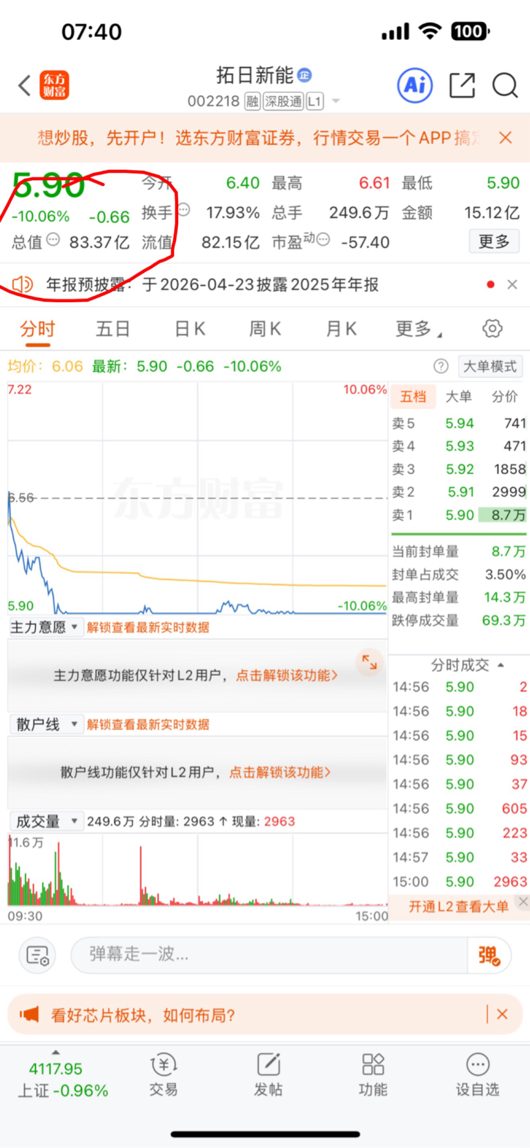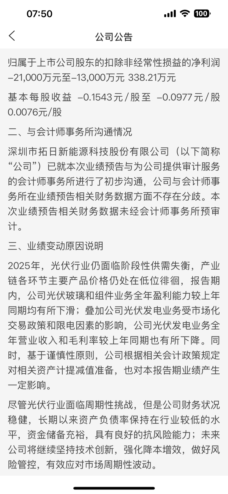 $拓日新能(SZ002218)$ 拓日亏损占市值2%左右,现在大盘波动经常都超过2%,通威亏损占市值超过10%,所以我个人认为拓日新能亏损属于预期以内还偏利好,整个光伏都是亏损,困境反转也不远了,个人看法,和股友们交流学习