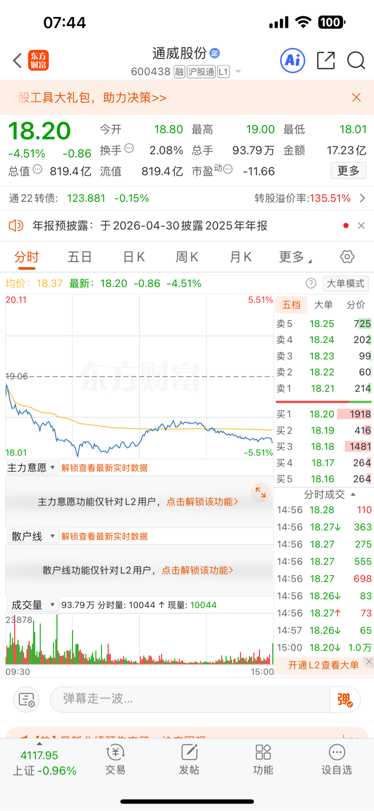 拓日亏损占市值2%左右,现在大盘波动经常都超过2%,通威亏损占市值超过10%,所