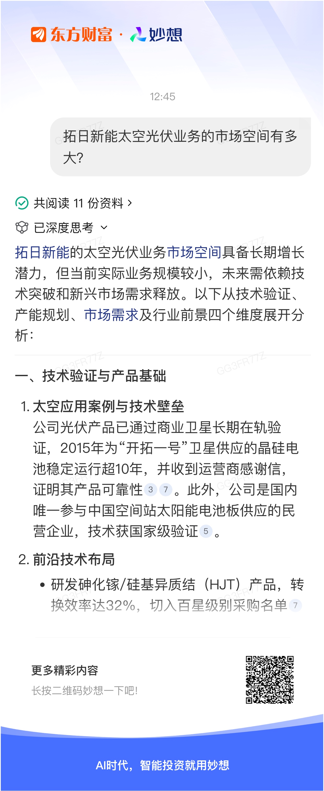 #@妙想,你怎么看?# 妙想一下:拓日新能太空光伏业务的市场空间有多大?